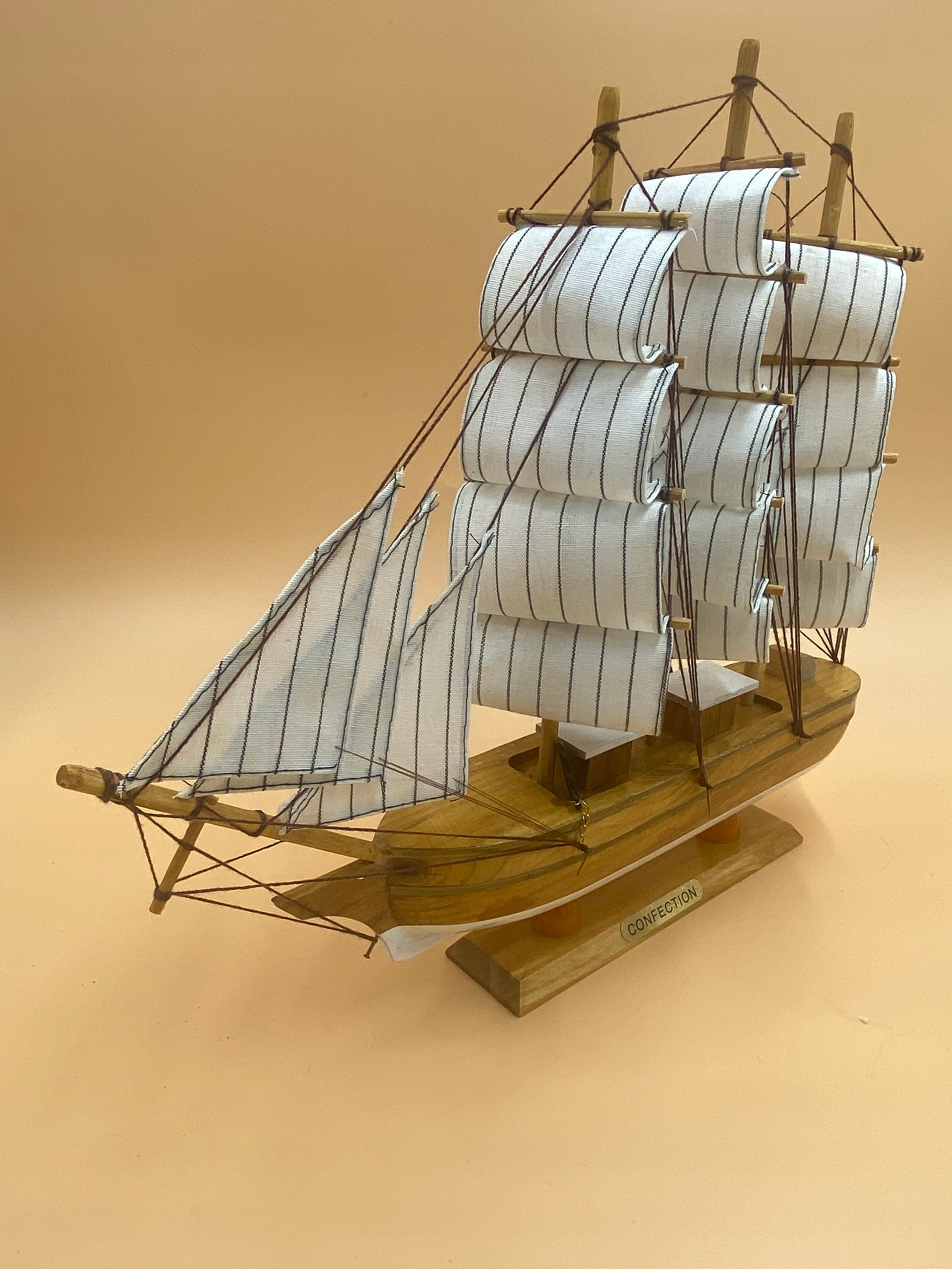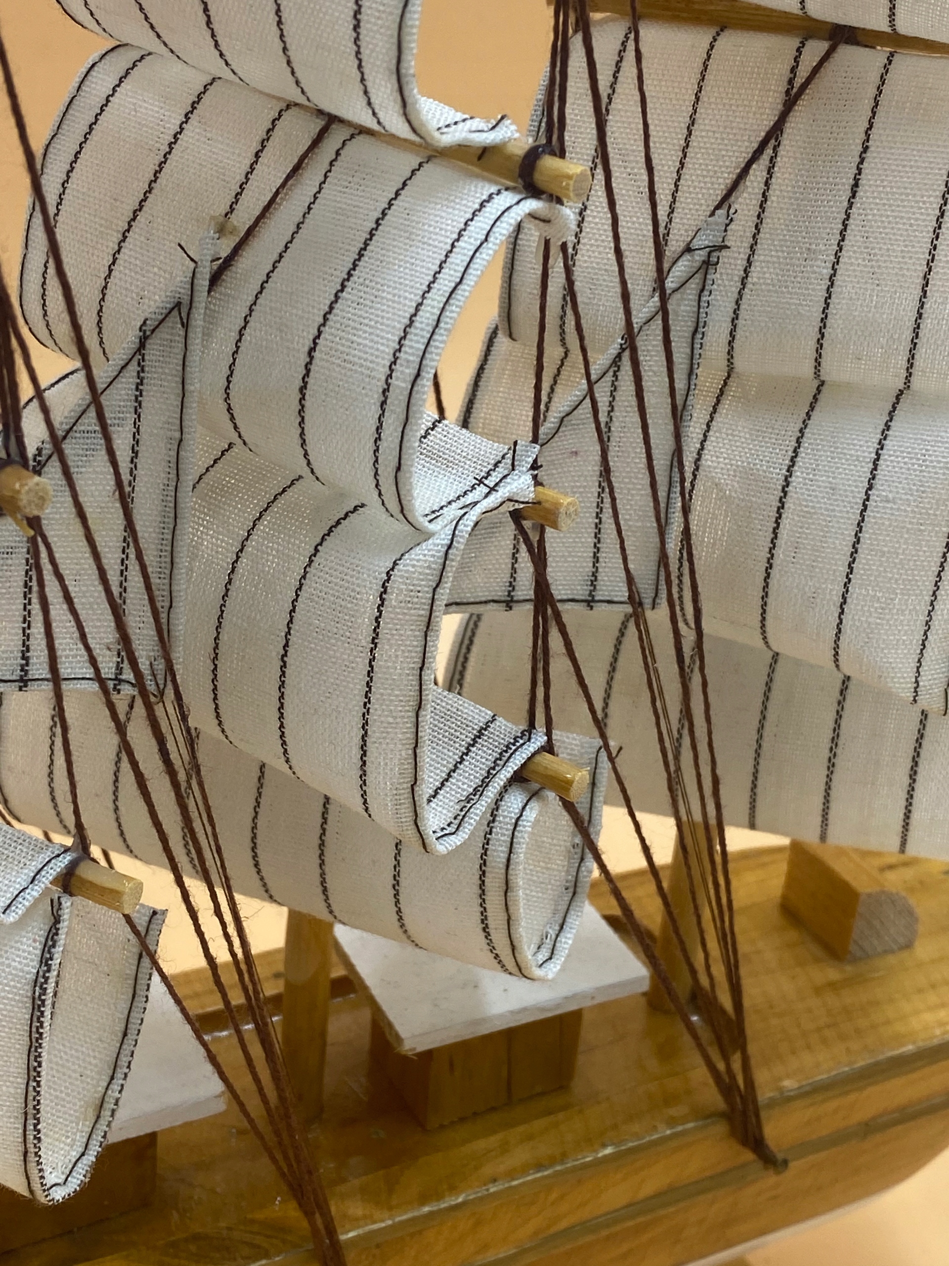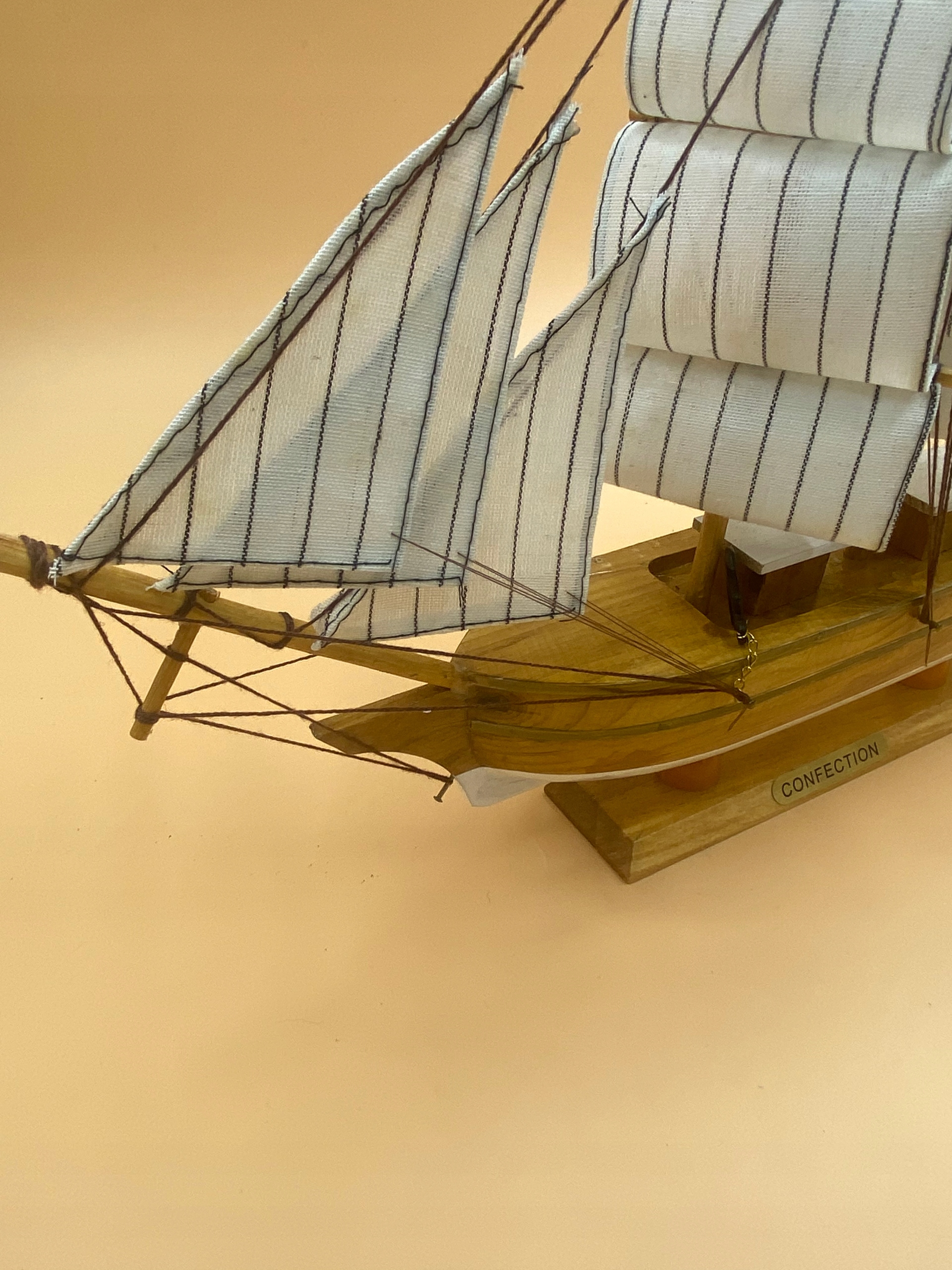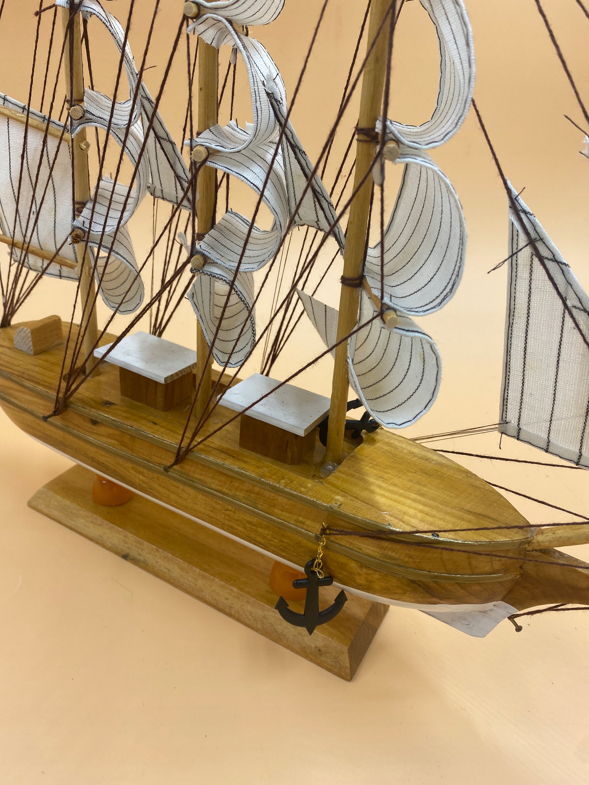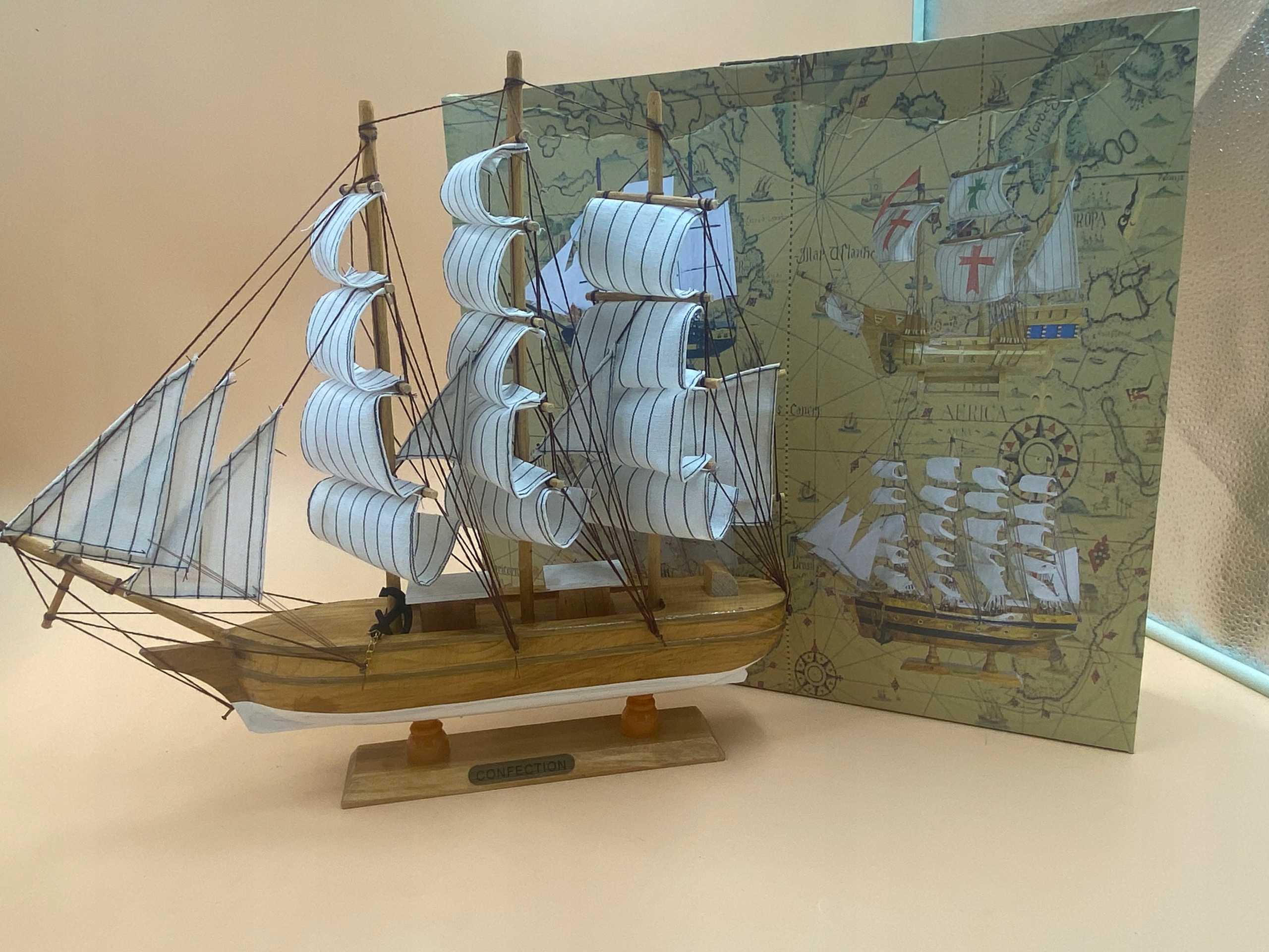 Уникальная модель парусного корабля ручной работы, выполнена из дерева, паруса из холста, дополнительно модель имеет такелаж.