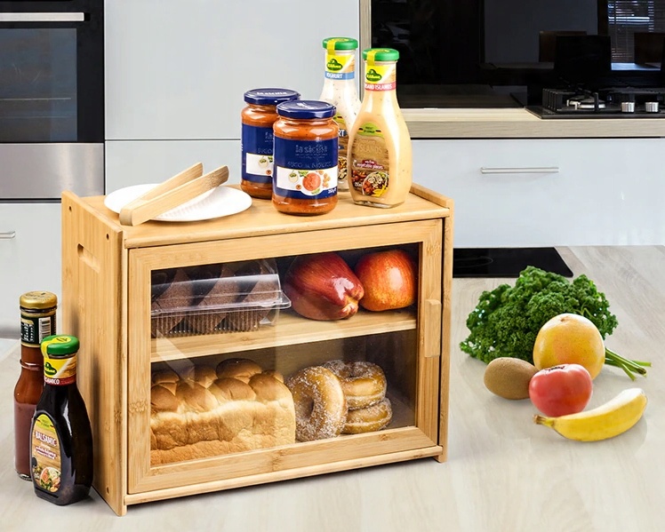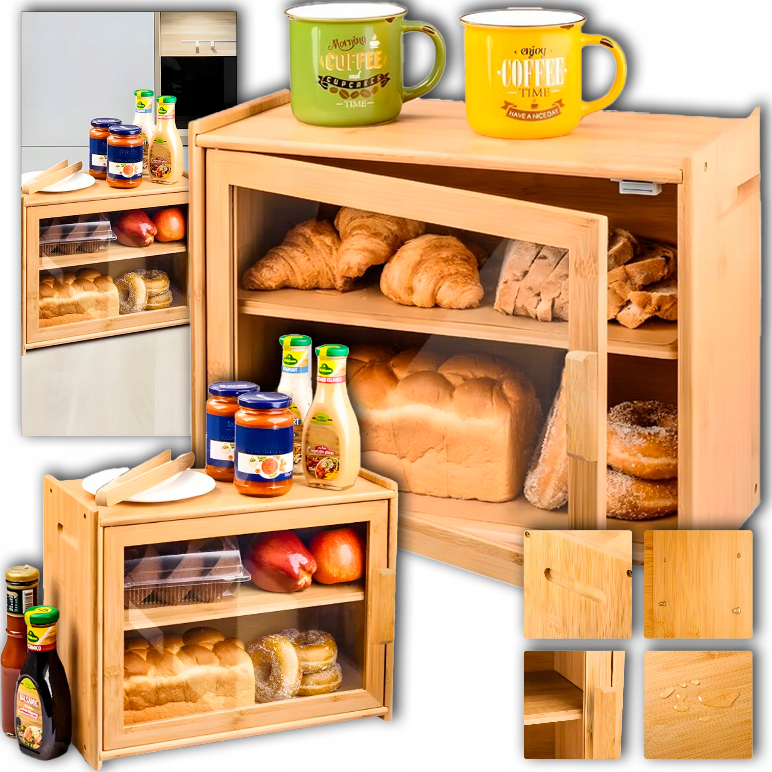 ДЕРЕВЯННАЯ БАМБУКОВАЯ КОРОБКА ДЛЯ ХЛЕБА БОЛЬШОЙ КОНТЕЙНЕР ДЛЯ ХЛЕБА С ПОЛКОЙ И ДОСКОЙ