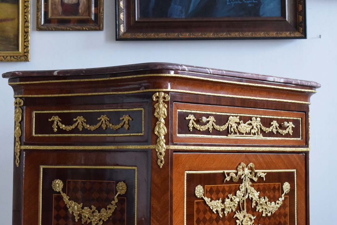 Невероятно красивый комод, множество украшенный фурнитурой, придающей мебели чудесный шарм. Имеет три вместительных ящика.