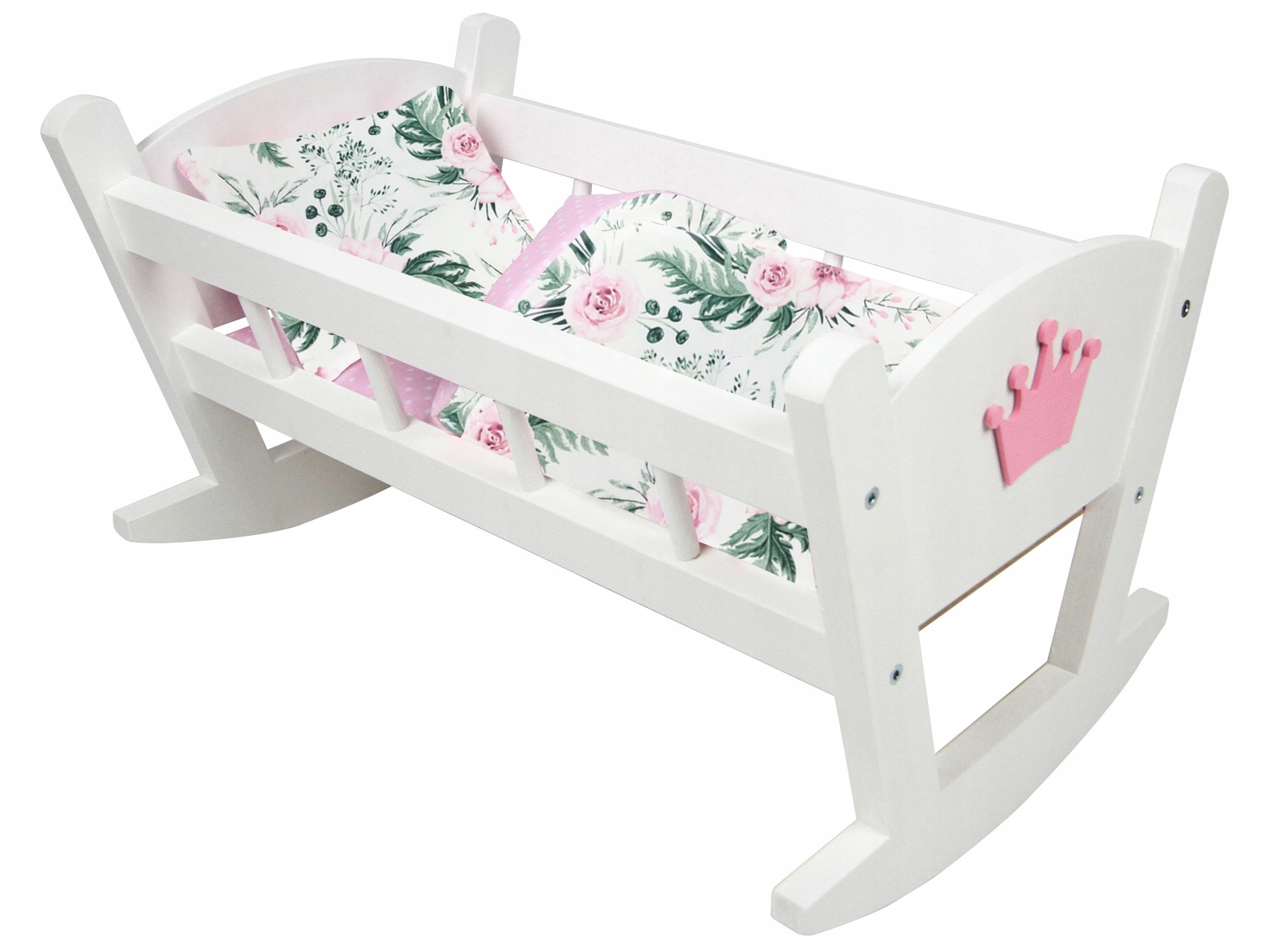 Красивая деревянная колыбелька для кукол из ели с комплектом постельного белья GARDEN.