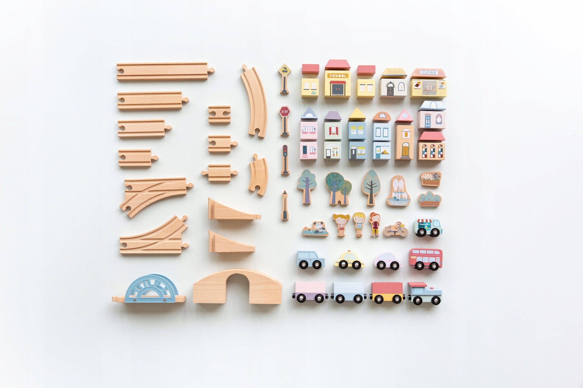Набор, состоящий из более чем 100 деревянных элементов, дает много возможностей для творческого здания маршрутов и городов - что -то новое каждый раз! Каждый элемент тщательно изготовлен из с сертификатом FSC (Совет по управлению лесами). Дополнительные деревянные наборы, содержащие: железнодорожный вокзал, зоологический сад, пожарная станция, город или дополнительные вагоны, могут быть заполнены в большую очередь. Упакованный в хороший картон, идеально подходит для подарочного , как для девочки, так и для мальчика.