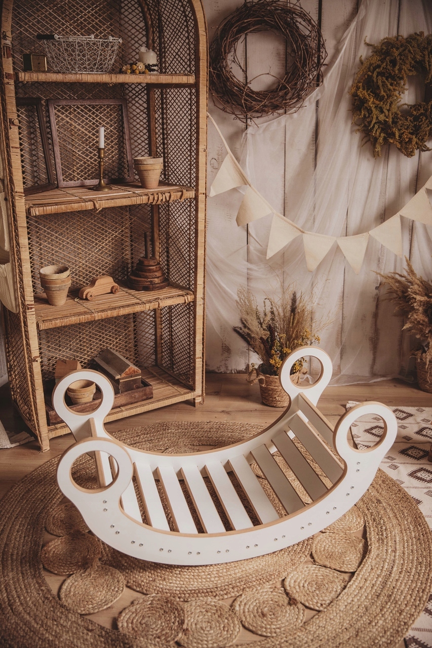 Дерев'яна дитяча качалка Монтессорі + подушка + стінка + гірка