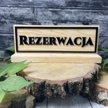 Наша информационная доска изготовлена из натурального дерева толщиной 2 см. Он крепится к прочному основанию из того же материала. Спереди надпись «Резервация» из черного материала HDF толщиной 3 мм.