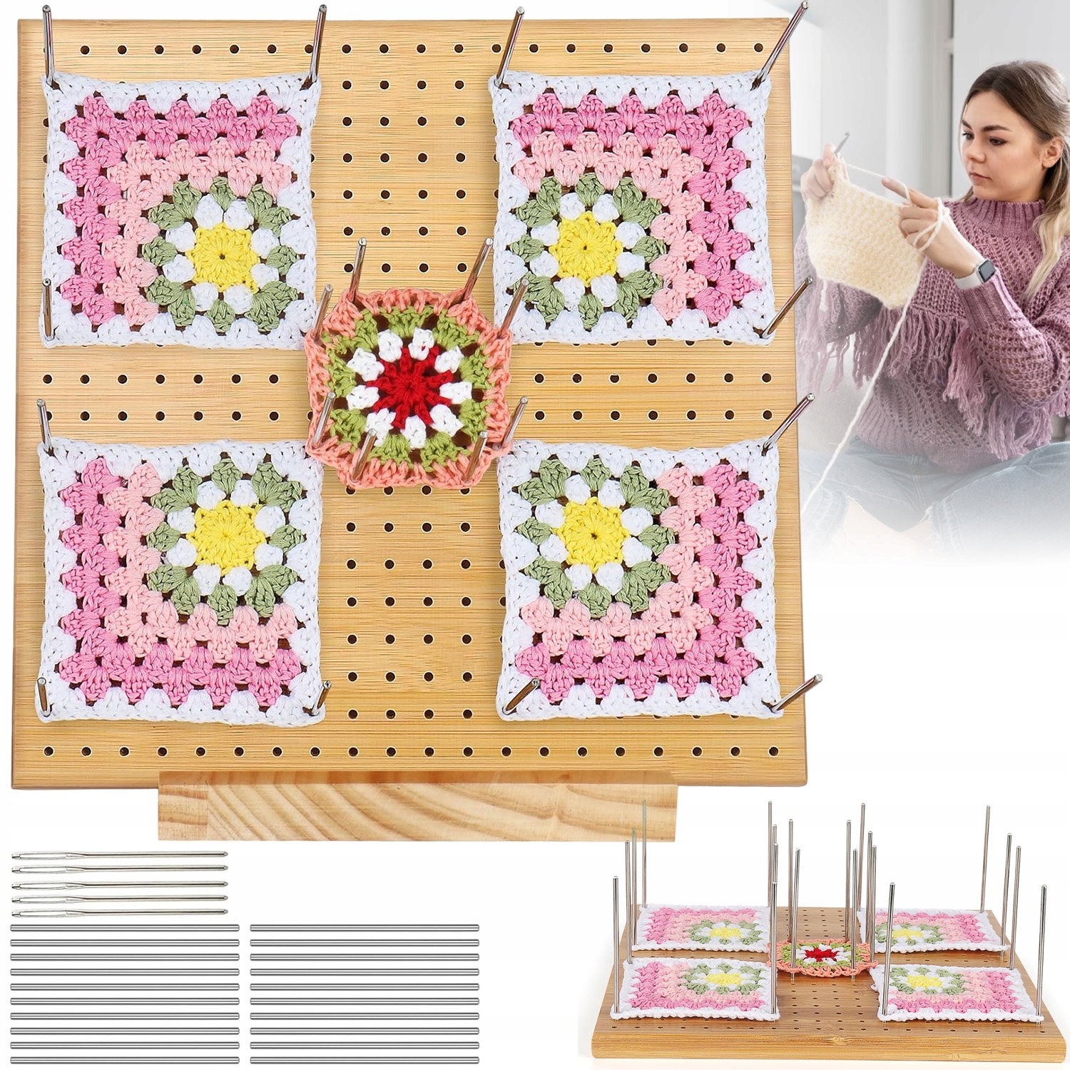 🎁🎁 Все необходимое для вязальщиц: Наша доска для вязания крючком изготовлена из высококачественного бамбука. Его размеры 23 х 23 см, толщина 1,5 см, что позволяет растягивать верхний слой бабушкиных квадратов. В этой тщательно изготовленной доске для вязания крючком есть все, что вам нужно: она достаточно маленькая, чтобы ее можно было переносить, и ее удобно использовать в небольших помещениях.
