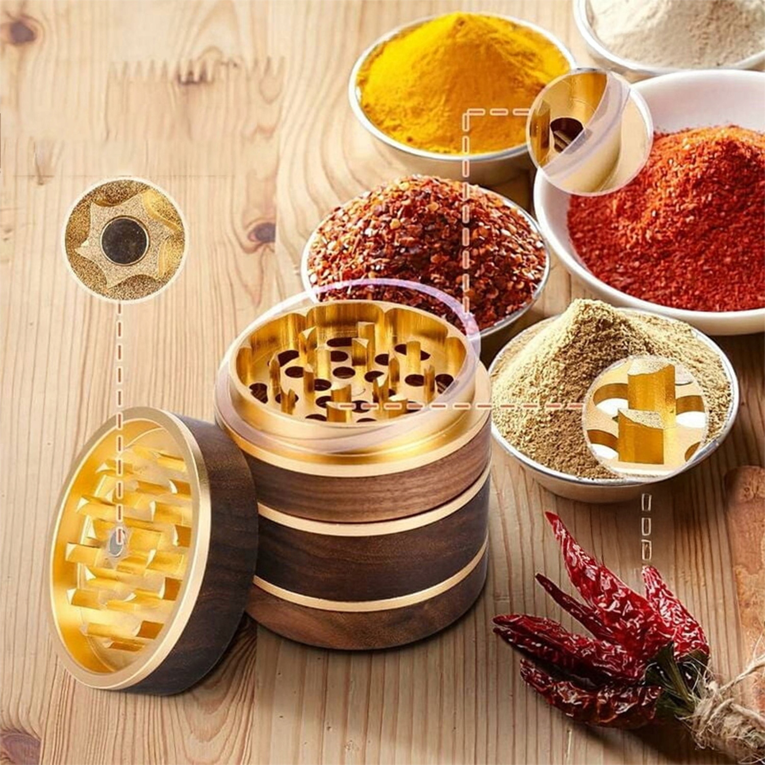 ИЗМЕЛЬЧИТЕЛЬ ДЕРЕВЯННЫЙ ИЗМЕЛЬЧИТЕЛЬ С МАГНИТНОЙ КРЫШКОЙ И ФИЛЬТРОМ