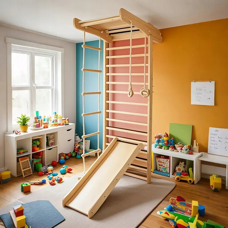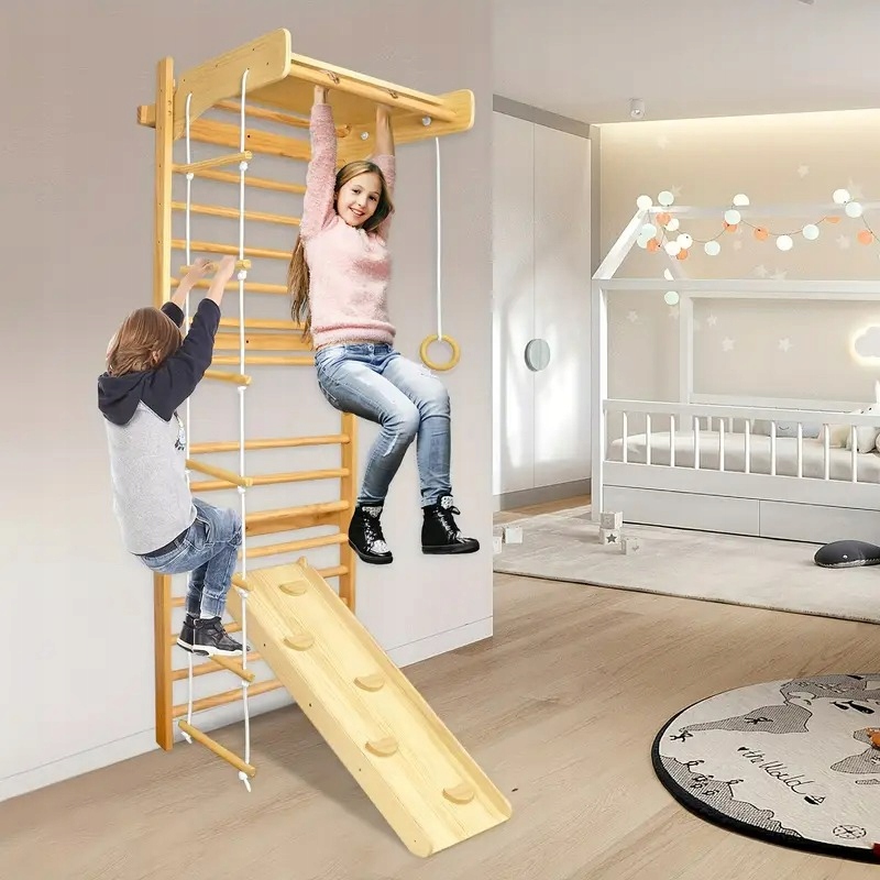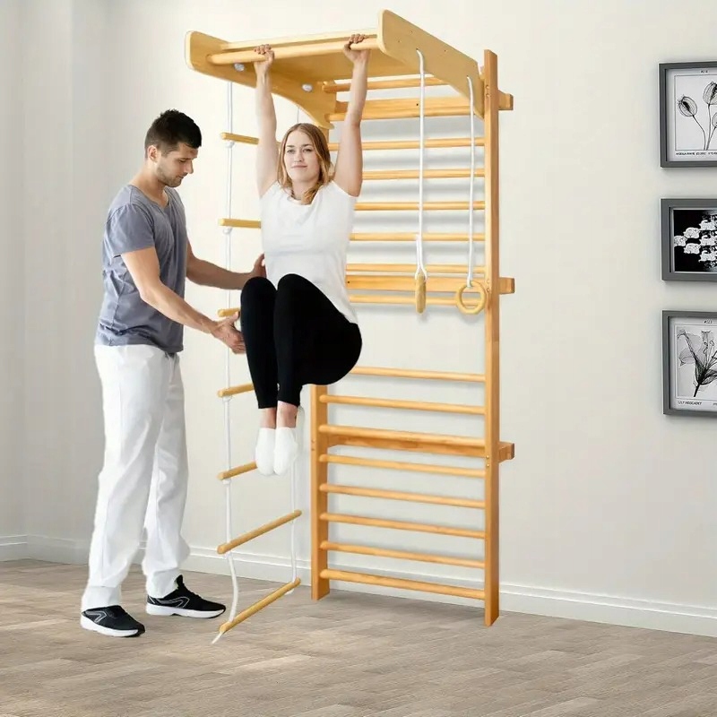 Идеально подходит для упражнения всего тела дома! Натуральная деревянная структура, которая превратит каждую стену в функциональную зону тренировок - для детей, взрослых и спортсменов.