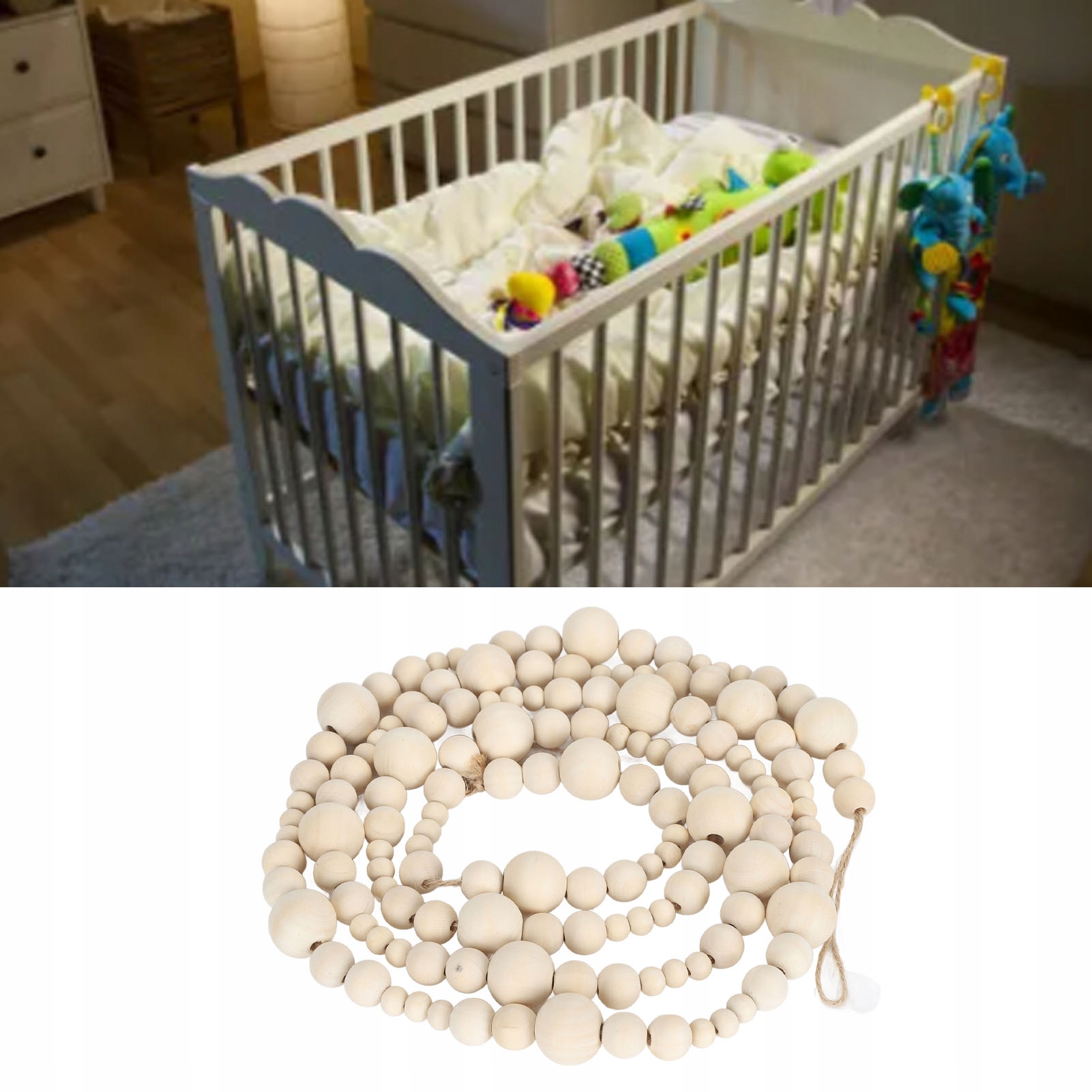 3. БЕЗОПАСНОСТЬ И ЭКОЛОГИЧНОСТЬ: Деревянная бусина изготовлена из экологически чистой древесины, что соответствует требованиям безопасности для подвесных украшений для детских кроваток.
