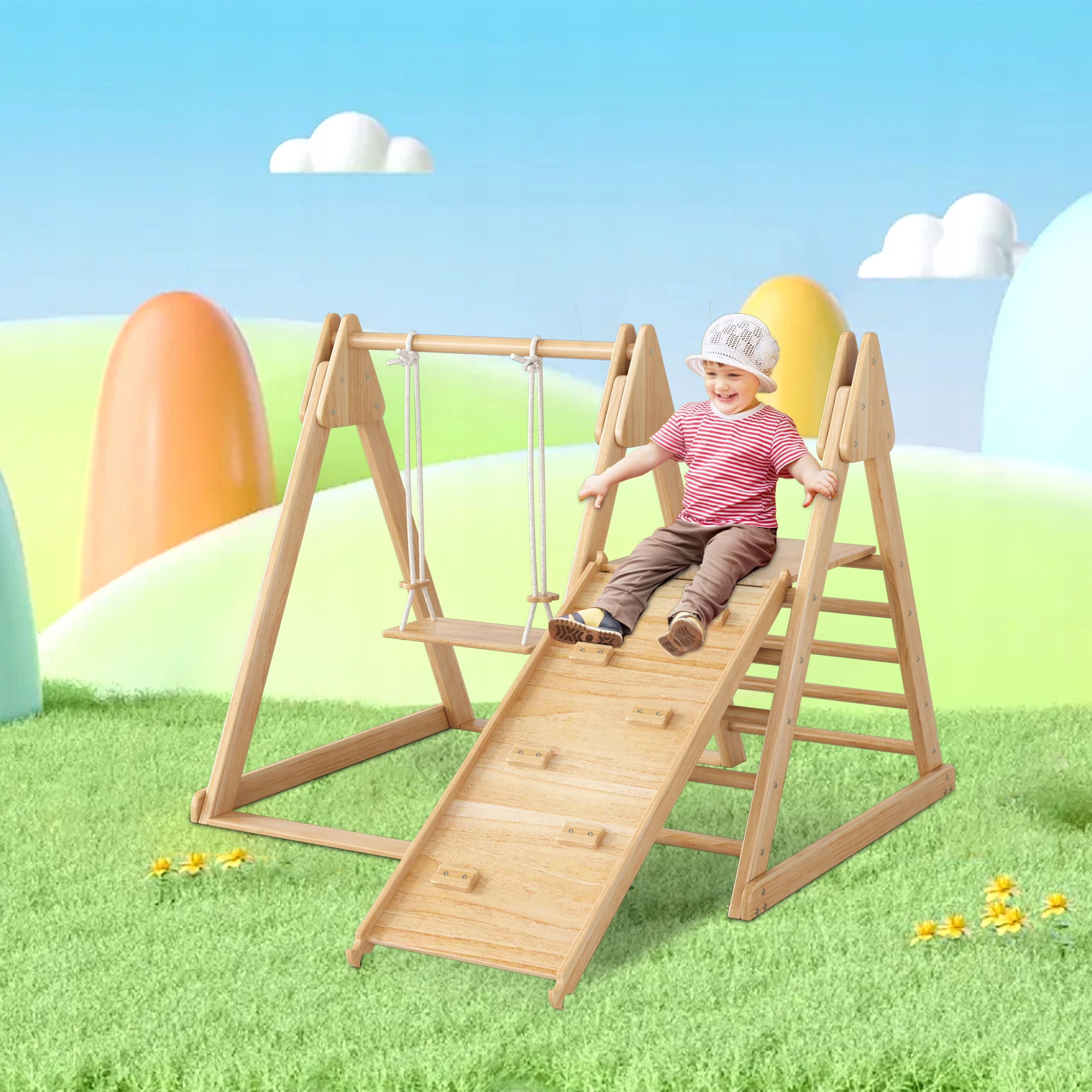 Деревянный свинг -слайд для детей с ростом игрушки для лазания в