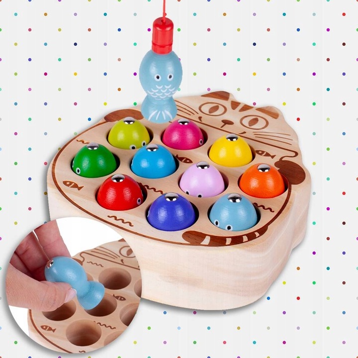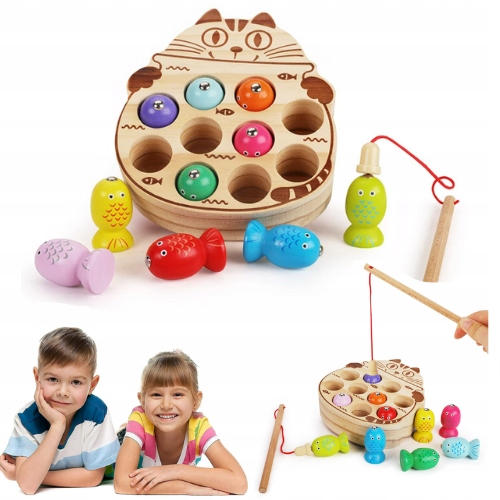 Деревянная игра ловить червяную кошку магнитное стержень