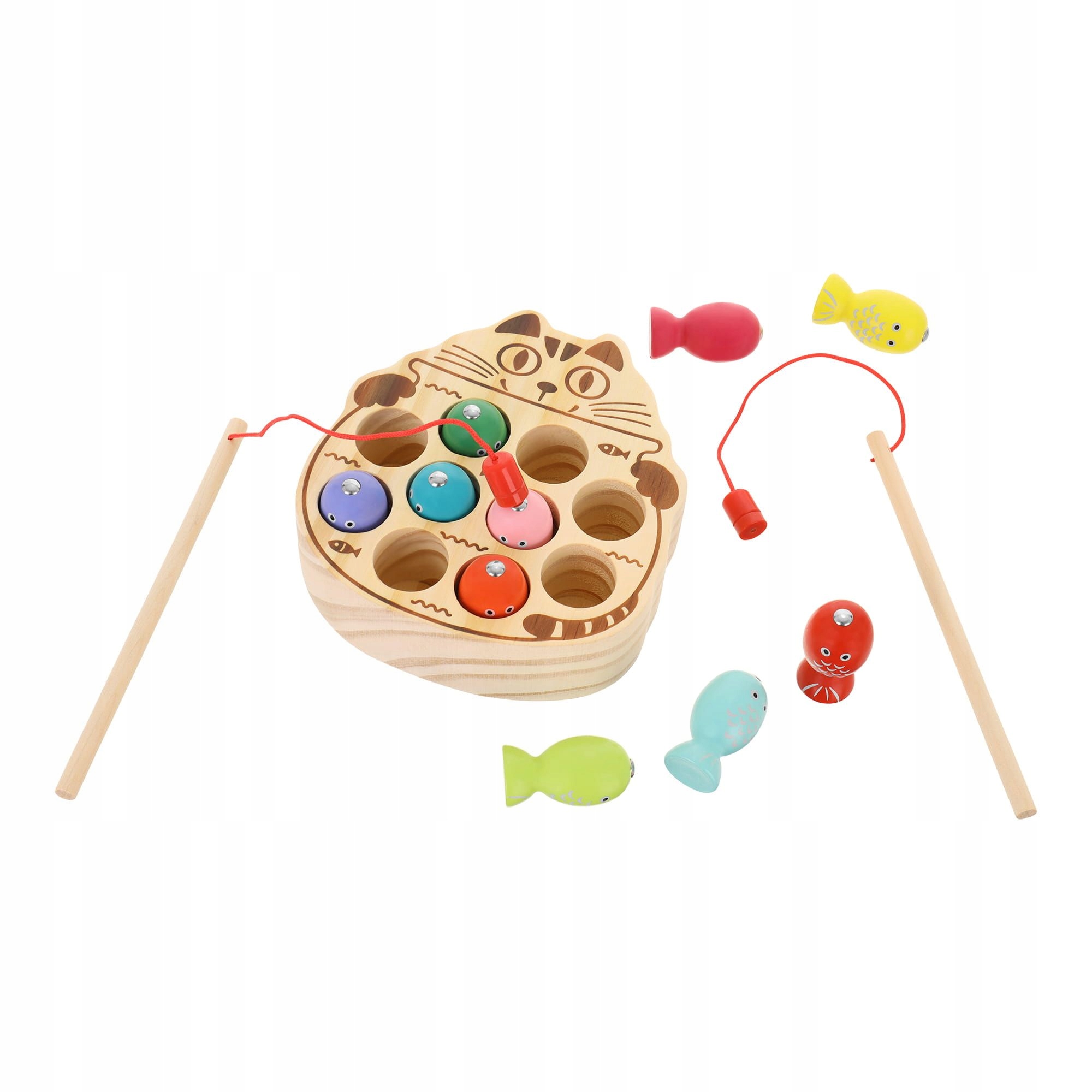 Деревянная игра ловить червяную кошку магнитное стержень