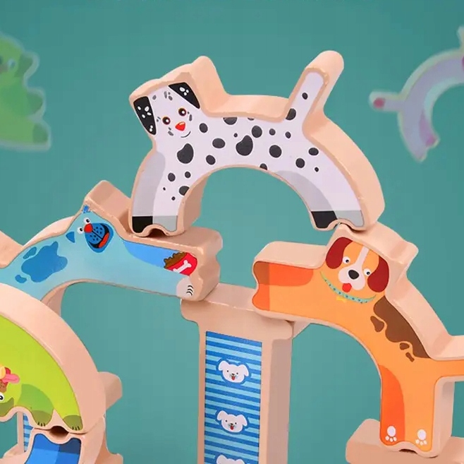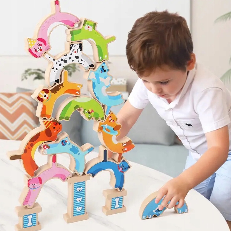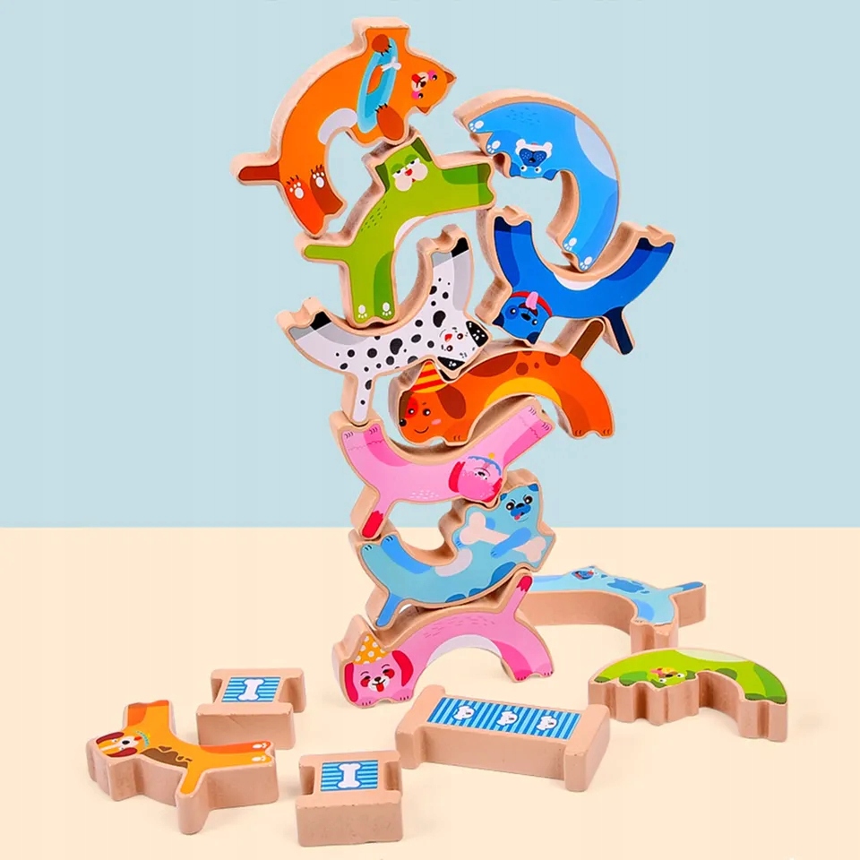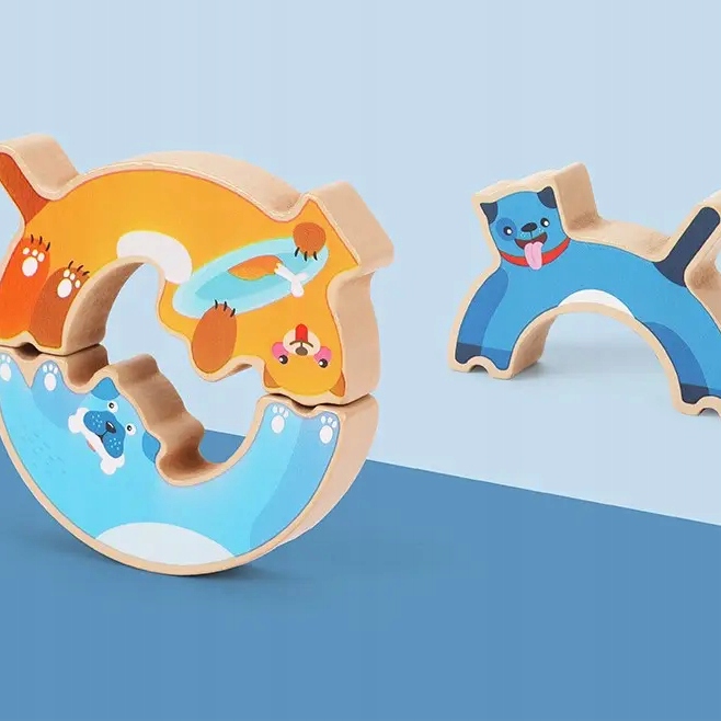 Каждая собака имеет разную форму и места соединения блоков. Ребенок должен подумать, как их правильно расположить, чтобы получилась башня, которая не развалится!
