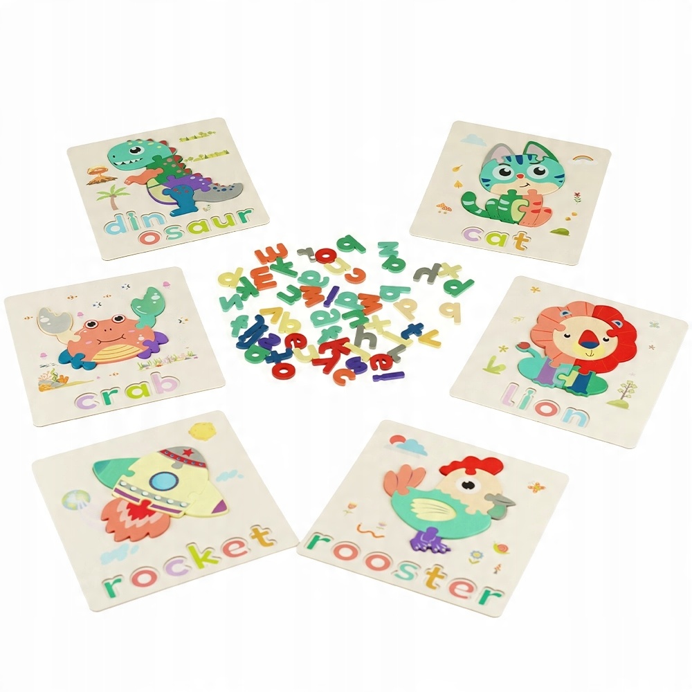 Пазлы 2 в 1 также идеально подходят для изучения английского языка, на другой стороне пазла находится картинка. и рядом надпись на английском языке - задание, по которому ребенок сможет составить слово.