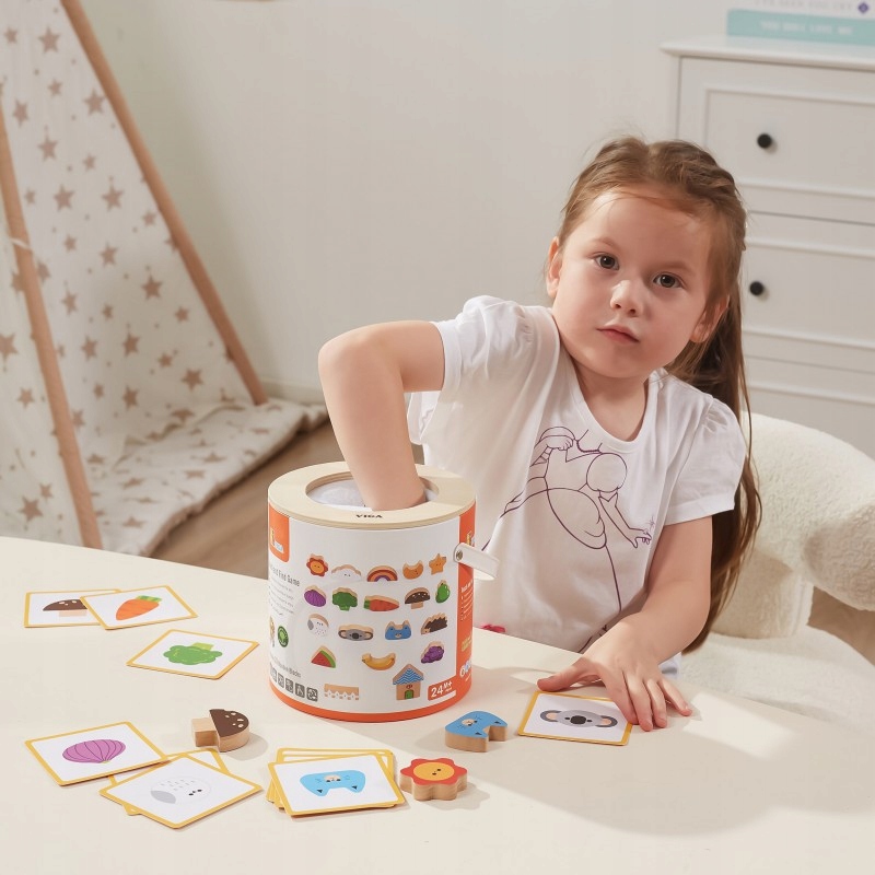 Игра в Dark из компании viga не только предоставит ребенку развлечения, но также и будет развивать необходимые навыки в школе. Игра содержит 20 красиво изготовленные, красочные деревянные блоки, 20 игровые карты и упаковка с разрезанным отверстием, в котором ребенок играет в «Touch and Feel», она также служит для хранения.