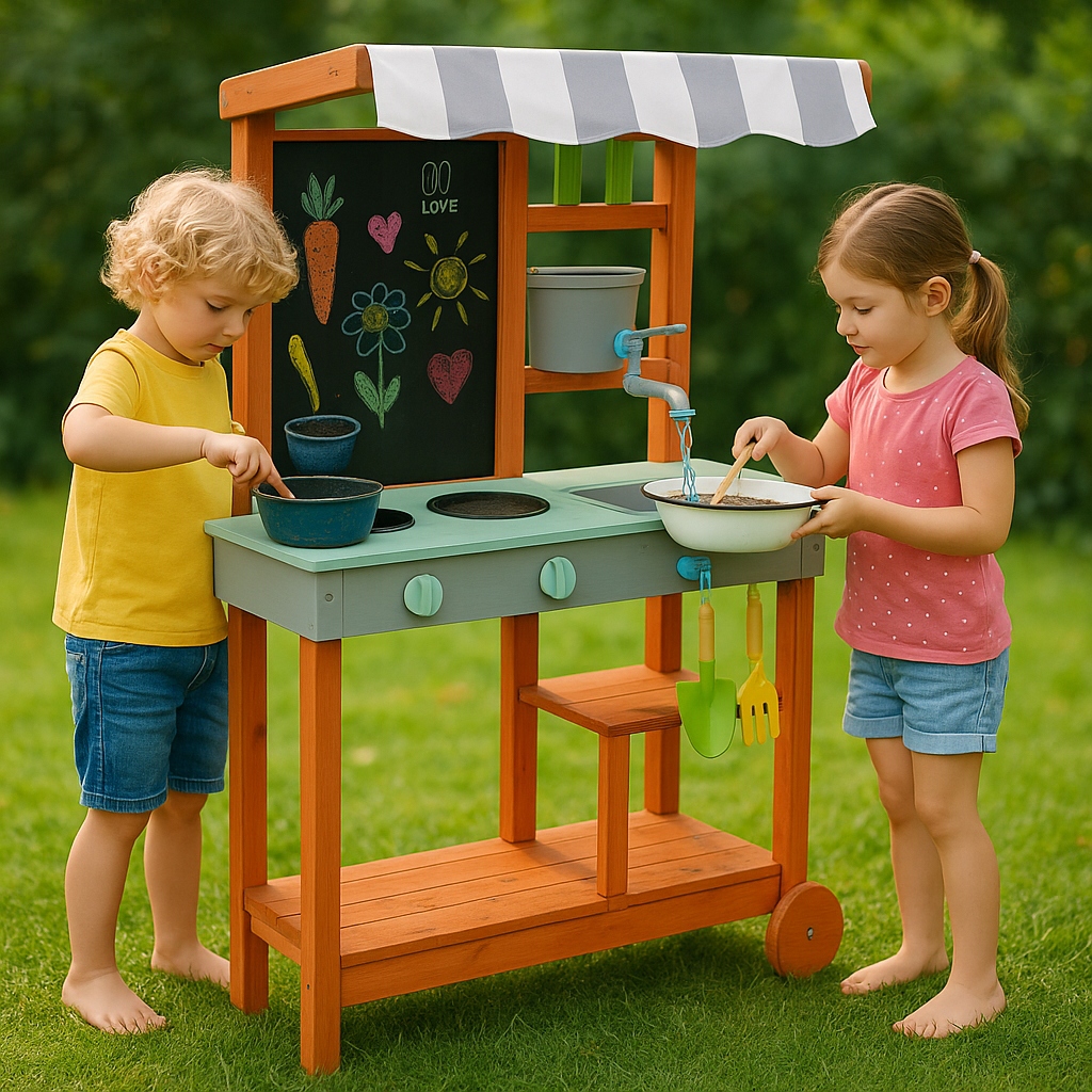 Сплошное, пропитанное дерево выдержит дождь, солнце и сотни кулинарных оборотов. Безопасно для маленьких ручек и отличных идей!