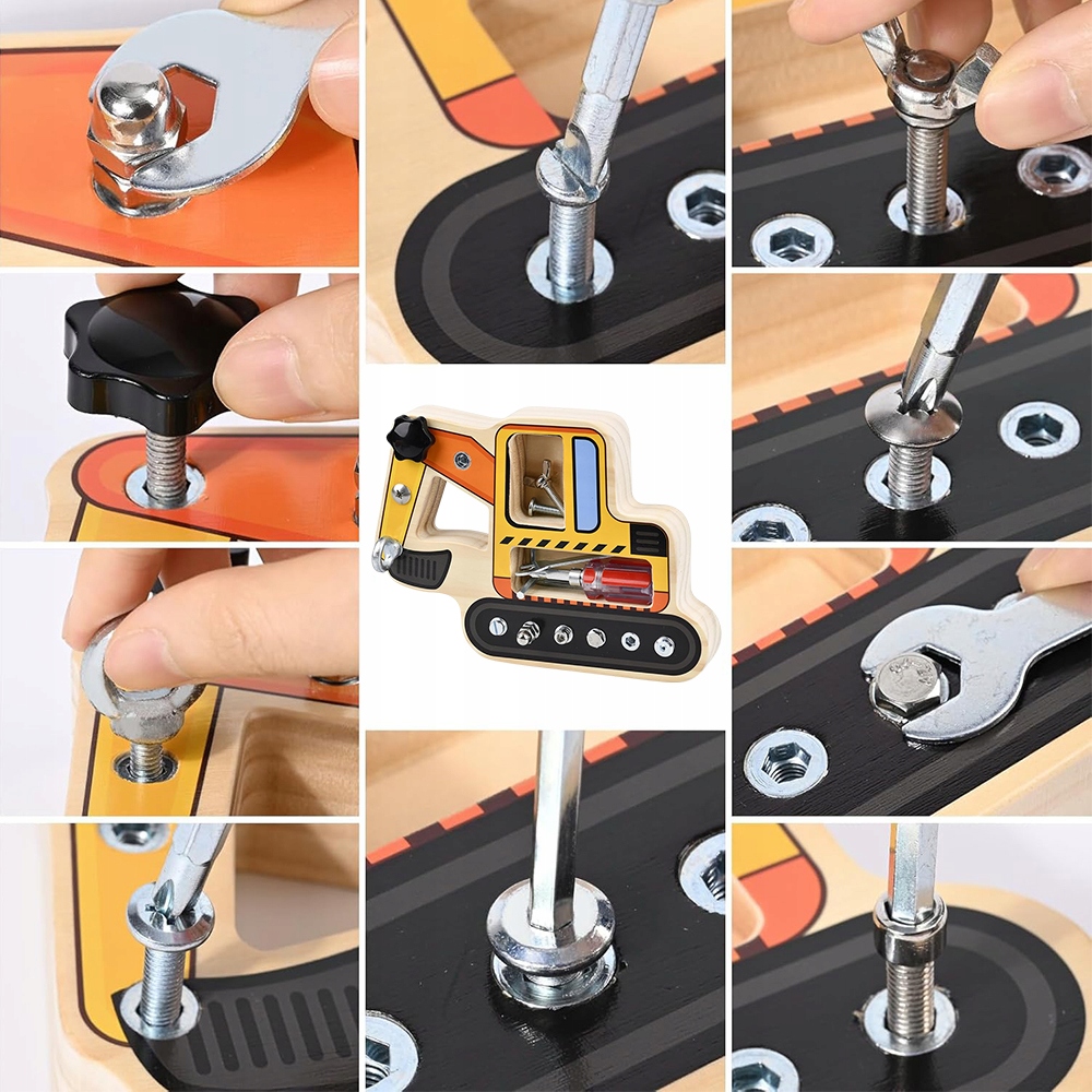 🔩 Набор содержит 10 различных винтов и 4 различных инструмента, которые помогают детям научиться пользоваться отвертками и распознавать различные типы винтов в практичной и увлекательной форме.