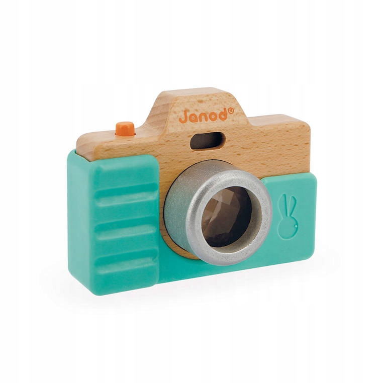 Деревянная камера от французского бренда Janod b> - идеальный подарок для маленького фото вентилятора. Это было очень эстетически сделано, с вниманием ко всем деталям. Он имеет съемный силиконовый корпус в легкой бирюзовой, линз-календоскопе, кнопке затвора, что вызывает характеристику реального звука камеры и даже flash . Играть с этим - настоящее удовольствие, особенно для детей, которые любят подражать взрослым - это помогает им привыкнуть к повседневной жизни и приобретать принципы социального поведения.