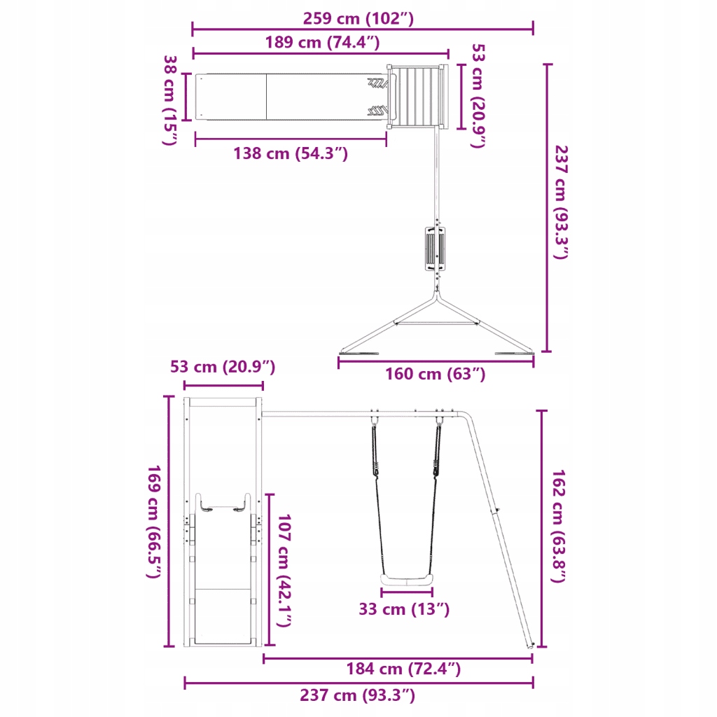 - Размеры качелей: 33 х 22 х 112,5 см (Ш х Д х В)