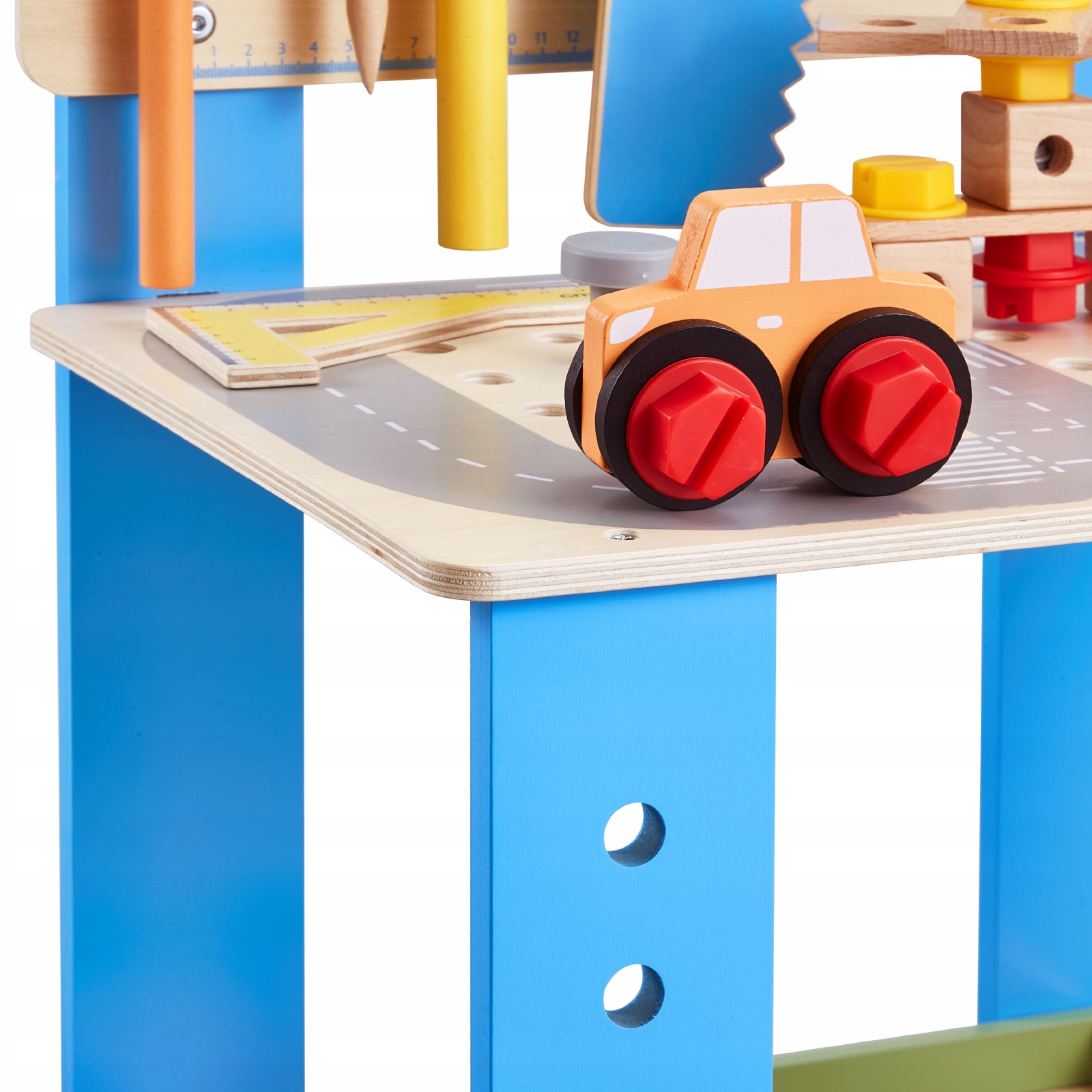 Подделка воображения вашего ребенка благодаря этой деревянной игрушке на столе! В комплекте с такими инструментами, как молот, отвертка, ключ и пила, дети могут играть роли и учиться во время строительства и создания. Это забавный способ развития моторных навыков и творчества - и, кроме того, это идеальный подарок для всех случаев!