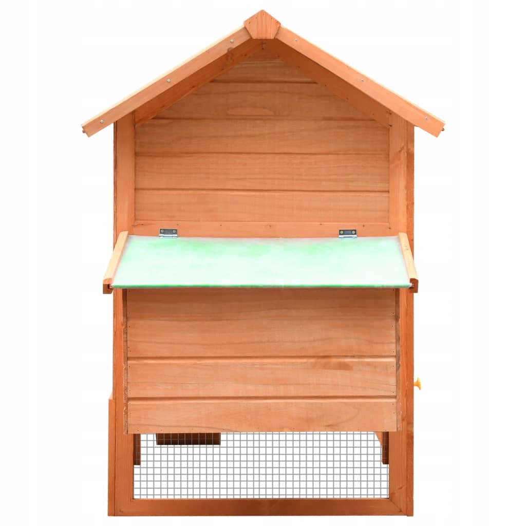 Конструкция из железной сетки позволяет следить за цыплятами и обеспечивает им достаточное количество свежего воздуха. Курятник построен с использованием высококачественного деревянного каркаса, который выдержит долгие годы эксплуатации. Зеленая крыша защищает от дождя, а уютный интерьер обеспечивает идеальное место для сна. Удобная рампа доставит вас с уровня земли на верхний уровень. Съемный поддон облегчает очистку. Дверца легко закрывается и фиксируется защелкой.