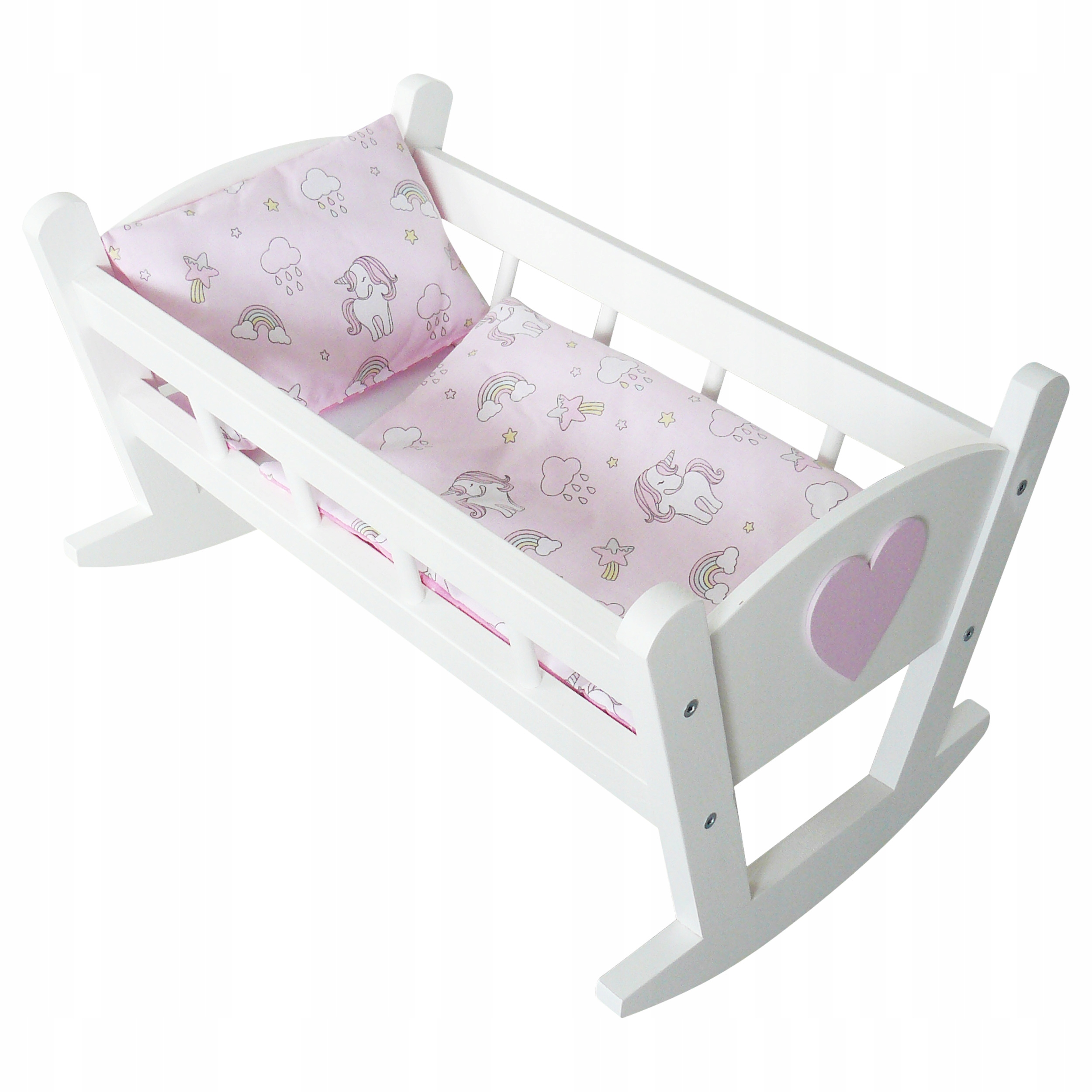 Красивая деревянная колыбелька для кукол, изготовленная из ель с комплектом постельного белья единорога.