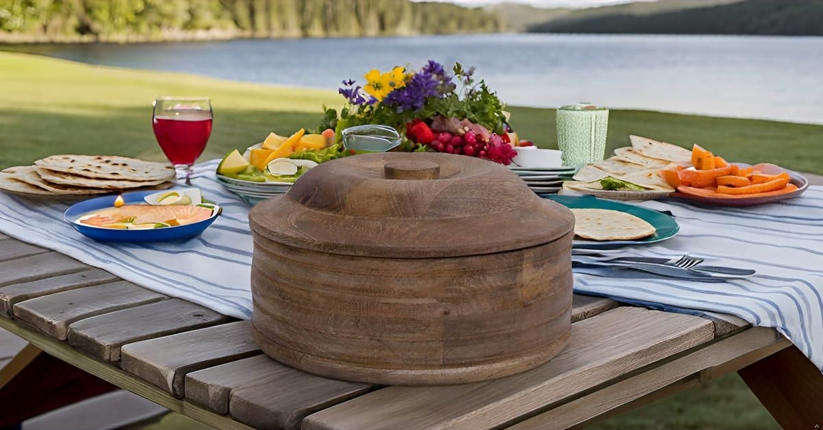 - Он имеет крышку для защиты тепла и в то же время обеспечивает достаточную вентиляцию, чтобы предотвратить предотвращение влаги и оставшуюся свежую. Гладкая отделка и не -точная деревянная поверхность облегчают вытирать остатки пищи или пятна.