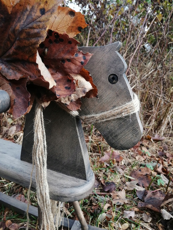 Деревянная лошадка-качалка, окрашенная воском, тонированная лошадка-качалка