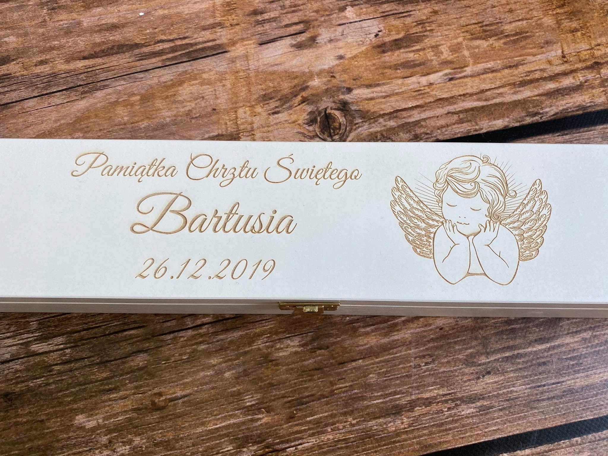 ДЕРЕВ'ЯНА КОРОБКА БІЛА ДЛЯ ГРАВІРУВАННЯ СВІЧІВ ХРЕЩЕННЯ