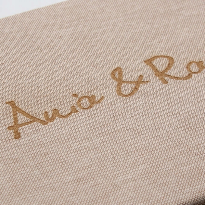 Коробка для фотографий и флэш-накопителей изготовлена из двух материалов: холста и дерева.