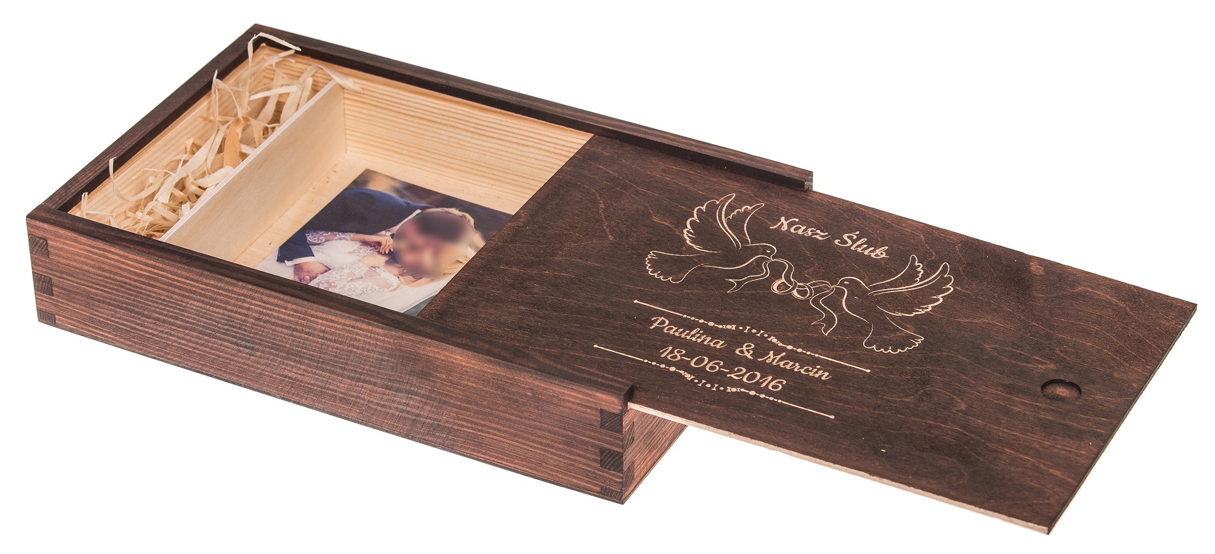 Представляем Вам деревянную коробку для фотографий. Упаковка рассчитана на размещение отпечатков размером 15х10 см. Дополнительным преимуществом является отделение для флешки. Мы можем выгравировать на коробке посвящение, логотип или рисунок, который станет незабываемым сувениром на долгие годы. Вы можете еще больше персонализировать свою коробку, добавив свои собственные пожелания или посвящения.