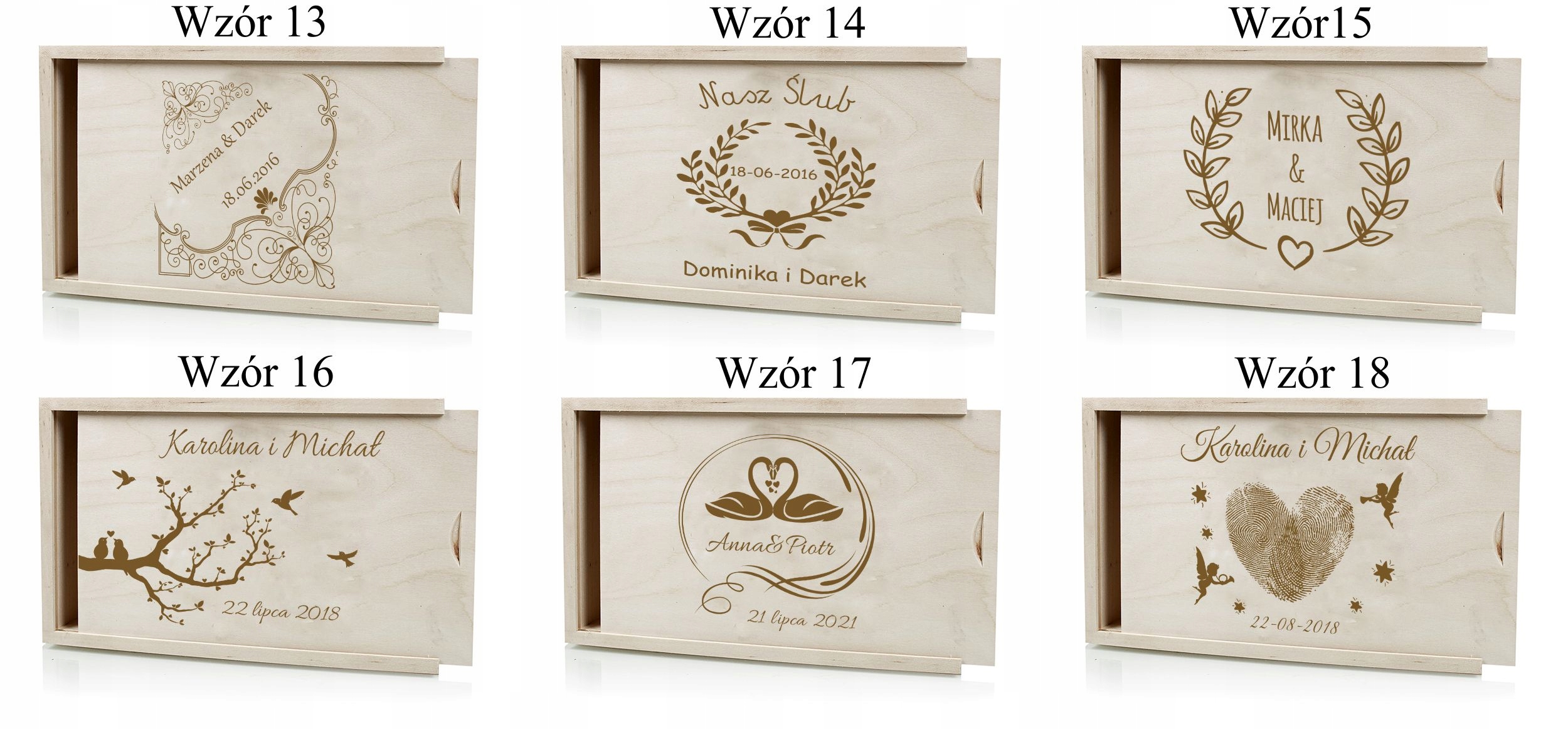 Представляем коробку для фотографий размером 18х13 мм с возможностью персонализации. Наш продукт — отличный выбор для свадебных фотографов, которые хотят дополнить свое предложение дизайнерской коробкой для отпечатков. Каждое изделие имеет две камеры. Один побольше для фотографий, а другой вмещает флешку. Дополнительно каждая коробка наполнена древесной шерстью, что дополнительно делает внешний вид более привлекательным и подчеркивает деревенский характер изделия.
