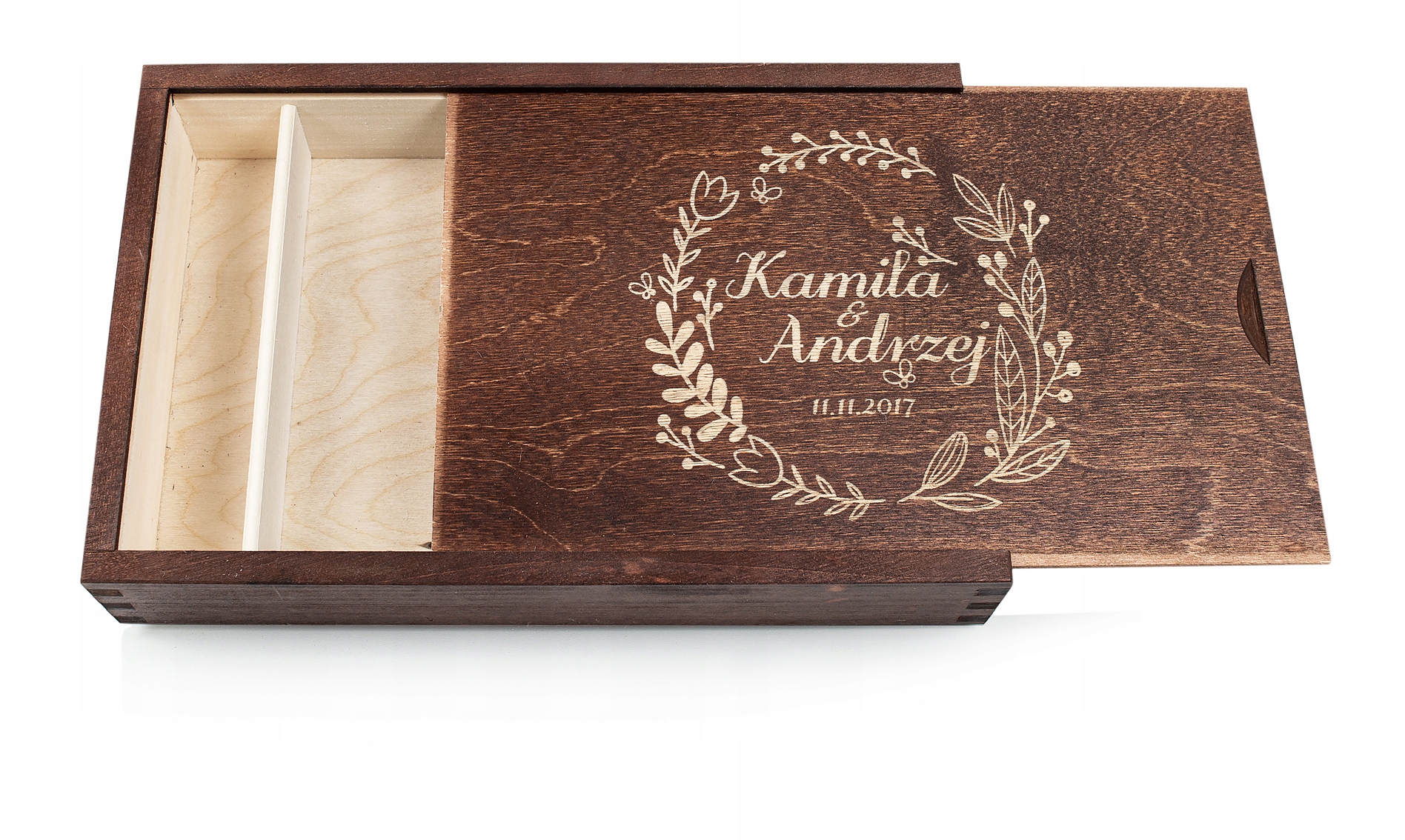 Представляем деревянную шкатулку для фотографий. Упаковка рассчитана на размещение отпечатков формата 23х15 см. Дополнительным преимуществом является отделение для флешки. Мы можем выгравировать на коробке посвящение, логотип или рисунок, который станет незабываемым сувениром на долгие годы. Вы можете еще больше персонализировать свою шкатулку, добавив свои пожелания или посвящения.