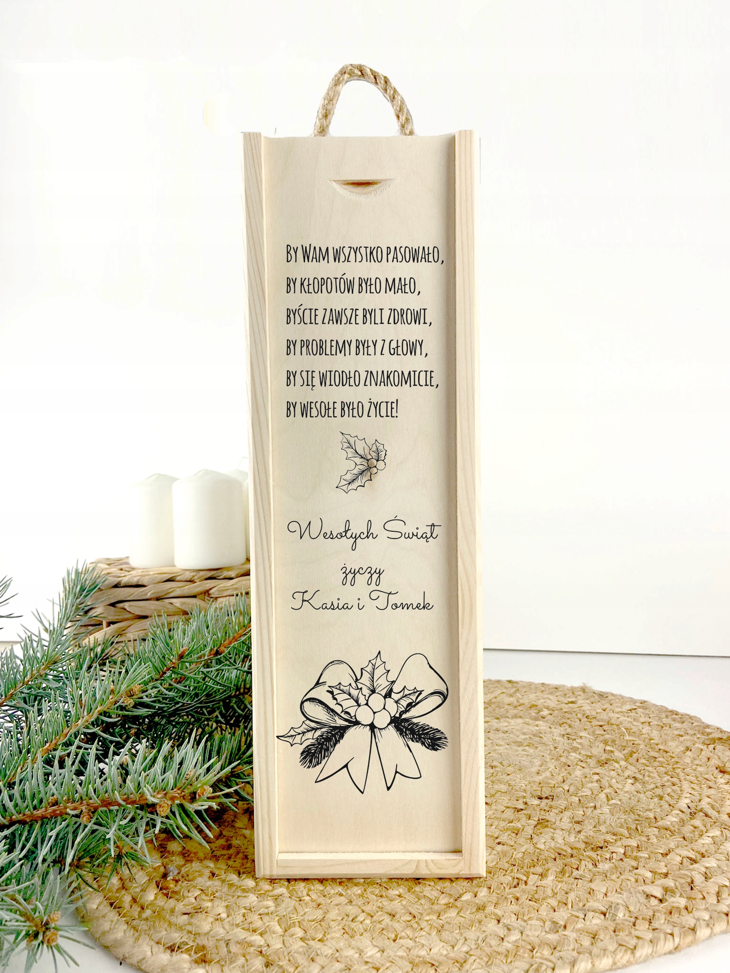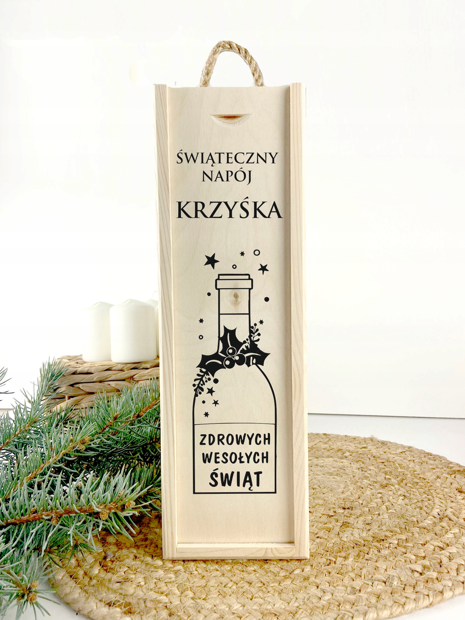 Дерев'яна коробка для вина, коробка для алкоголю, різдвяний подарунок, САНТА + ім'я