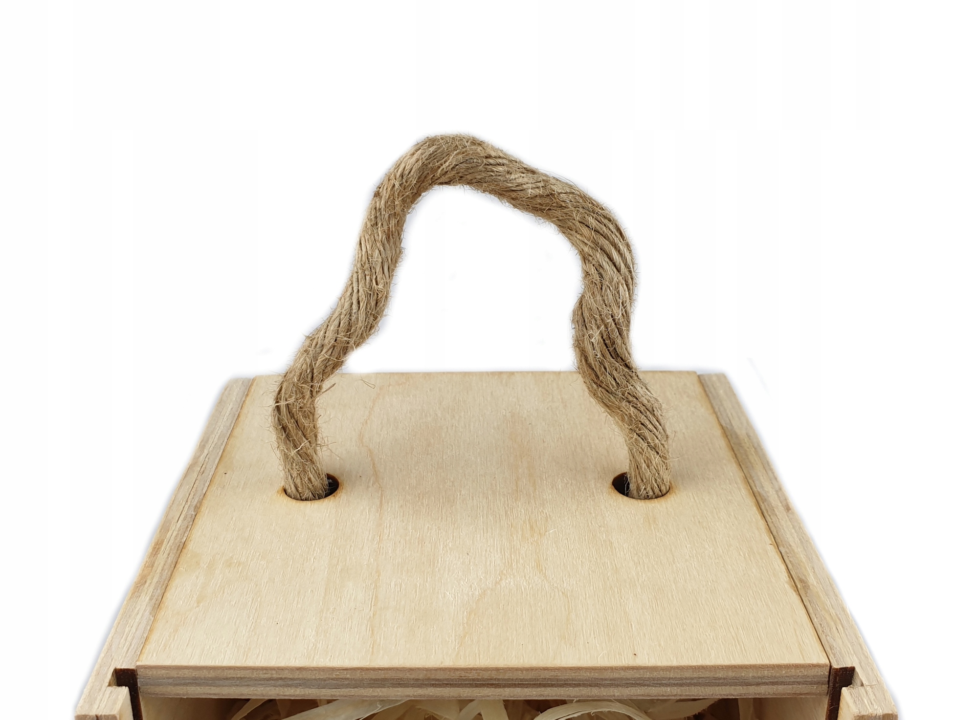 Конструкция: деревянный ящик имеет прочную ручку и толстые стенки, обеспечивающие устойчивость упакованная бутылка. Бутылка покрыта древесной ватой. Прочная. Прочная. Прочная.