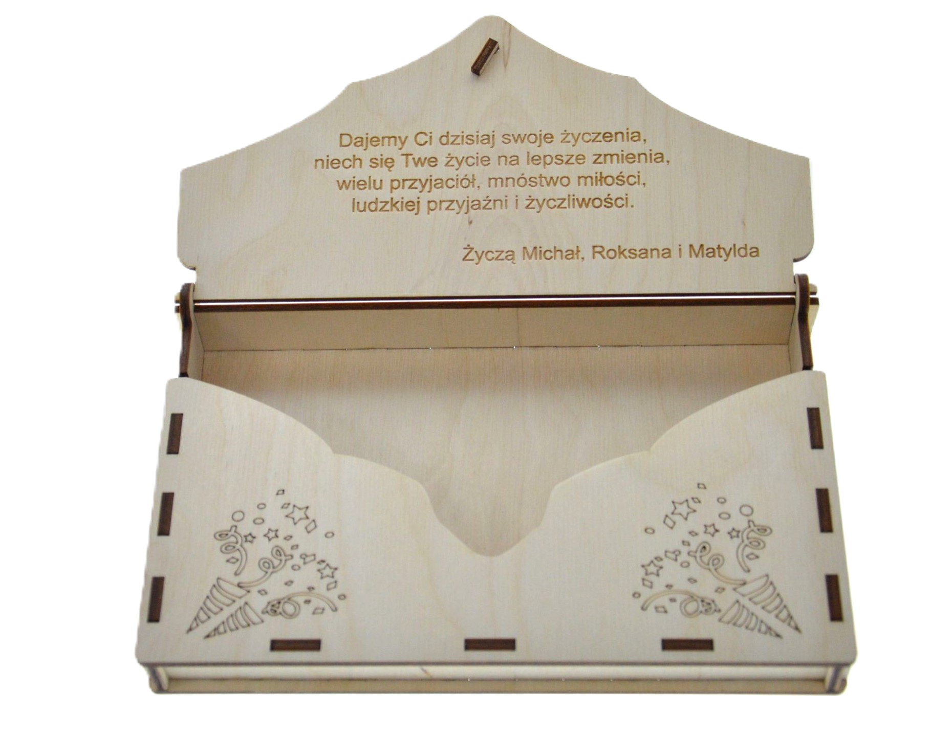 Этот деревянный чемодан просто для ! из высококачественной березы, обеспечивает долговечность и престижный вид. Он выгравирован пожелания, чтобы сделать ваш жест еще более личным. Вы можете положить деньги в конверт, ваучер, царапин -карты, Ailerade.