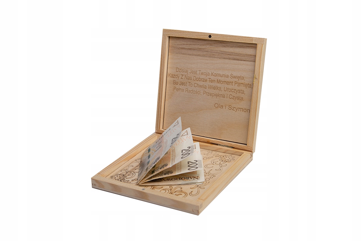 Закрытая деревянная коробочка с принтом снаружи и внутри для денег.