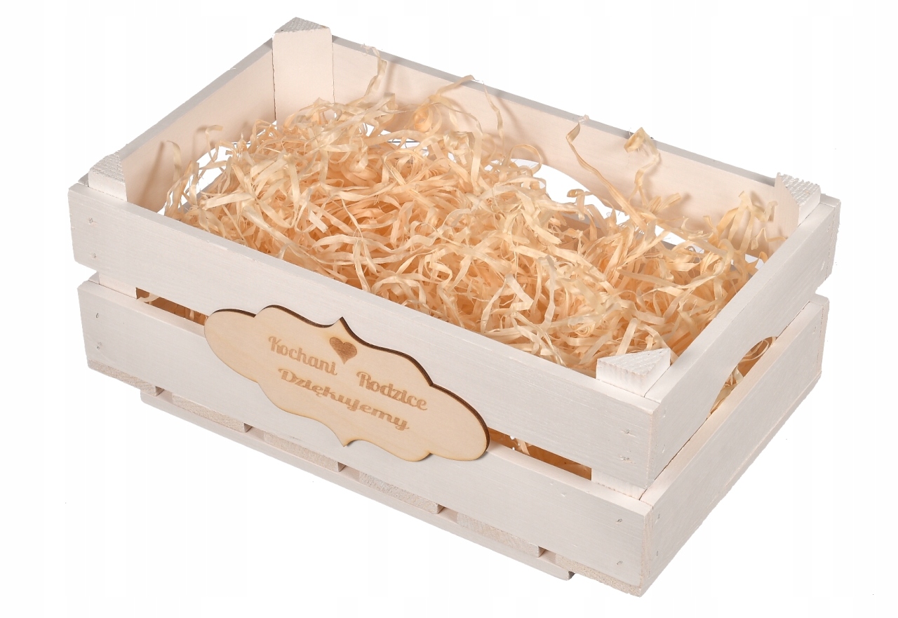 Во время свадьбы мы хотим подчеркнуть, насколько важны для нас родители. Чтобы выразить свою признательность и поблагодарить их за все их усилия, заботу и постоянную заботу, мы дарим им подарок во время свадебной церемонии. На эту роль отлично подойдет наша белая деревянная шкатулка с гравированным декором, в которую можно упаковать ранее купленный подарок, алкоголь или другие сладости. Изделие идеально впишется в рустикальный стиль. Чтобы сделать его еще более впечатляющим и защитить его содержимое, мы включили в подарок древесную шерсть.