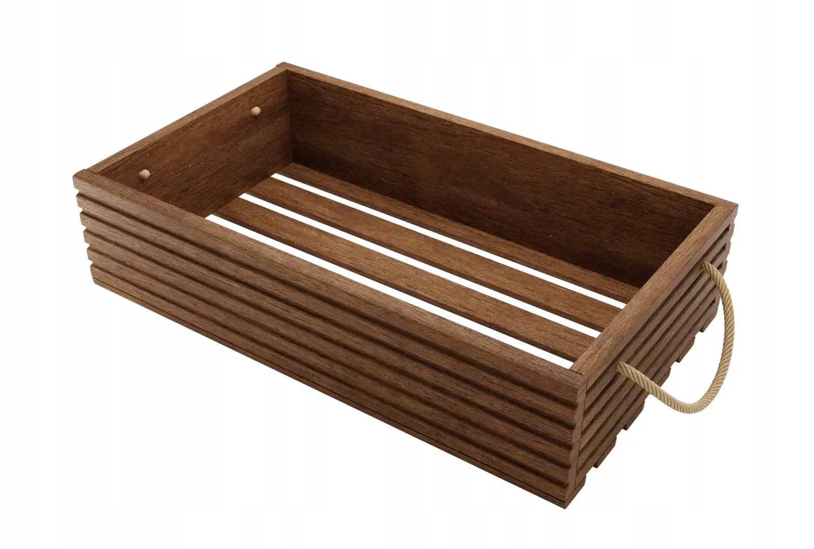 Коробка с внешними размерами 60 x 35 x 14,5 см - это прямоугольная коробка передач из натуральной сосны. В каждой коробке есть ручки из толстой джутовой веревки, которая облегчает перенос, а также впечатляет его эстетический вид и высокую функциональность.