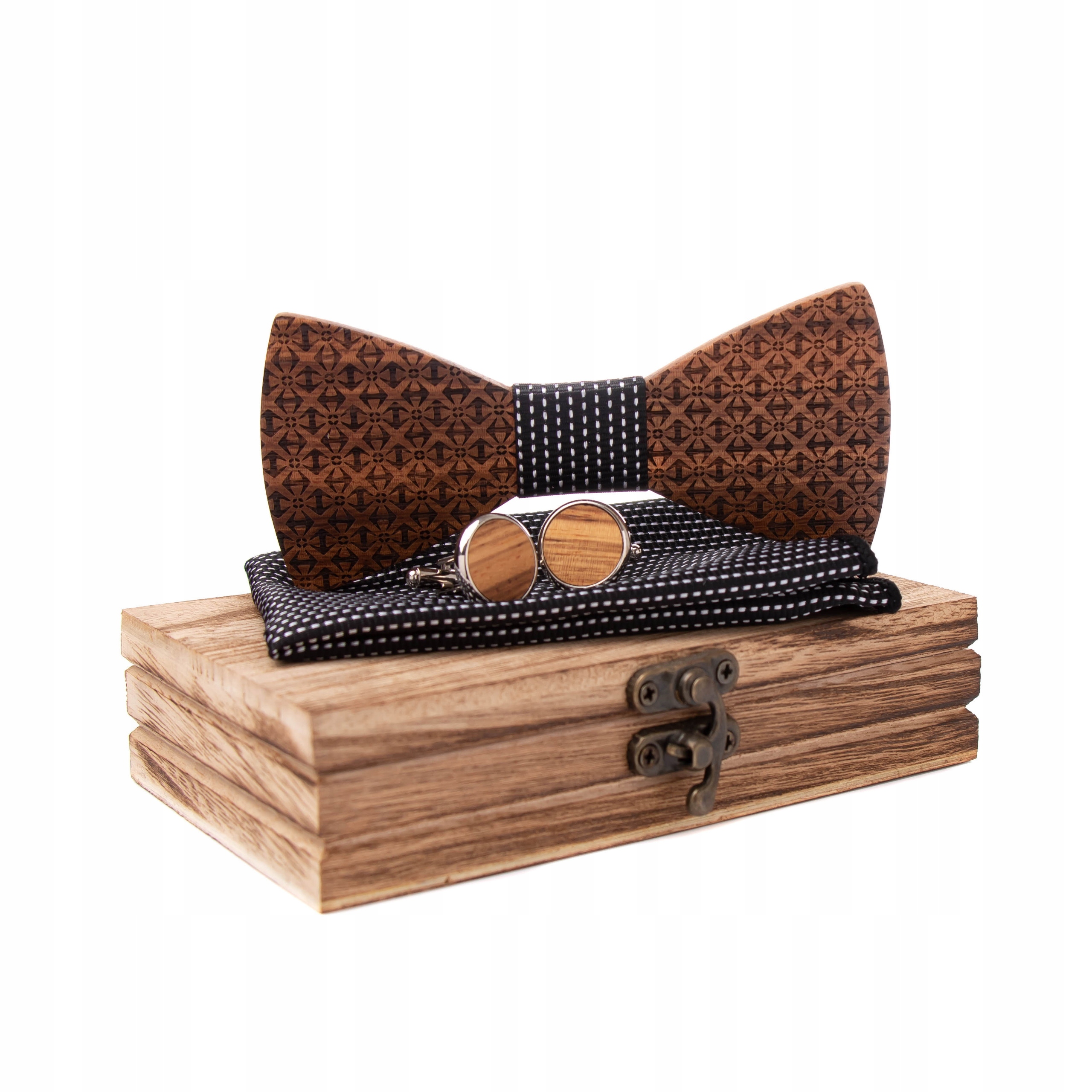 ДЕРЕВЯННЫЙ ГАЛСТУК-БАБОЧКА КАРМАННЫЕ ЗАПОНКИ В КЛЕТКУ МОДНЫЙ ПОДАРОК ДЛЯ НЕГО