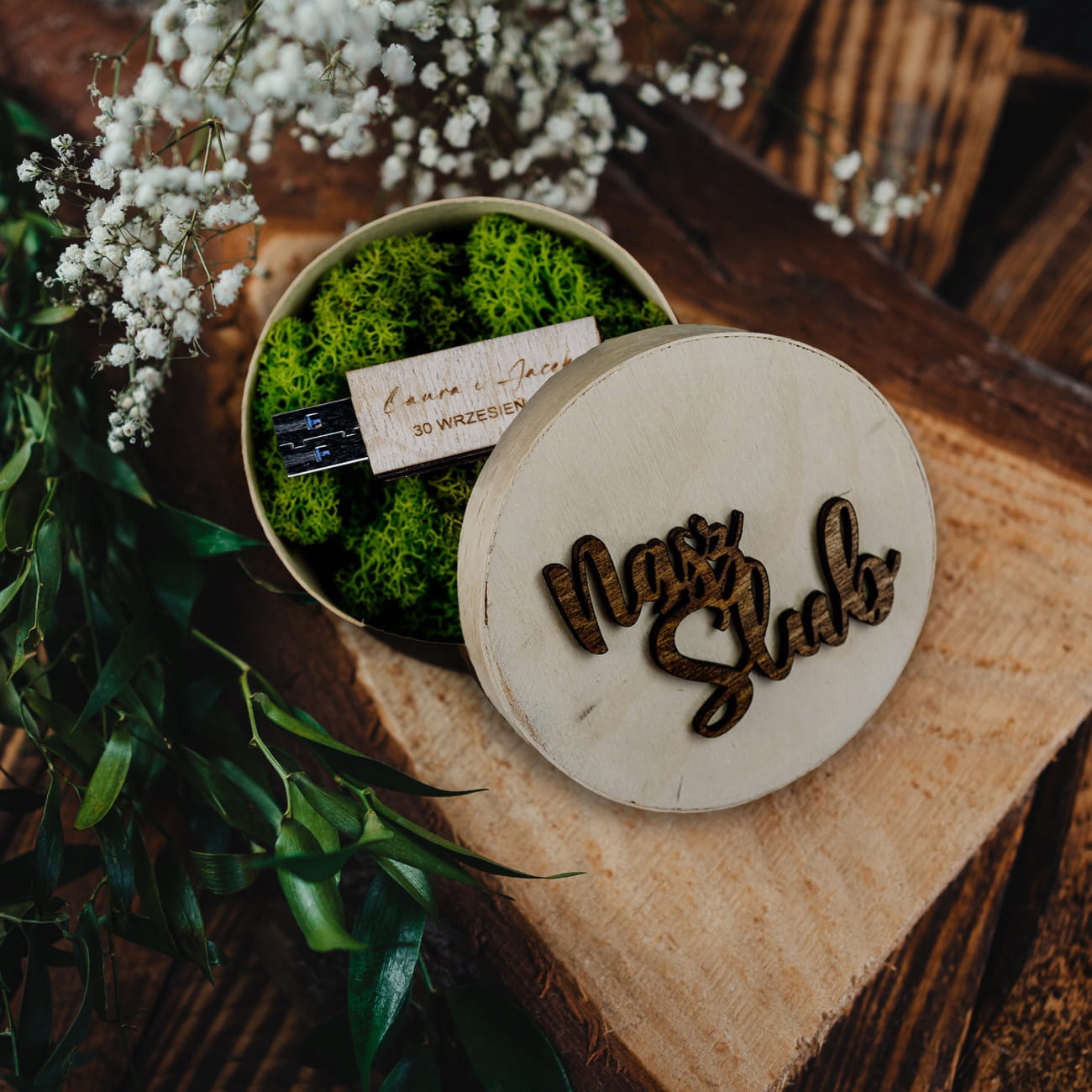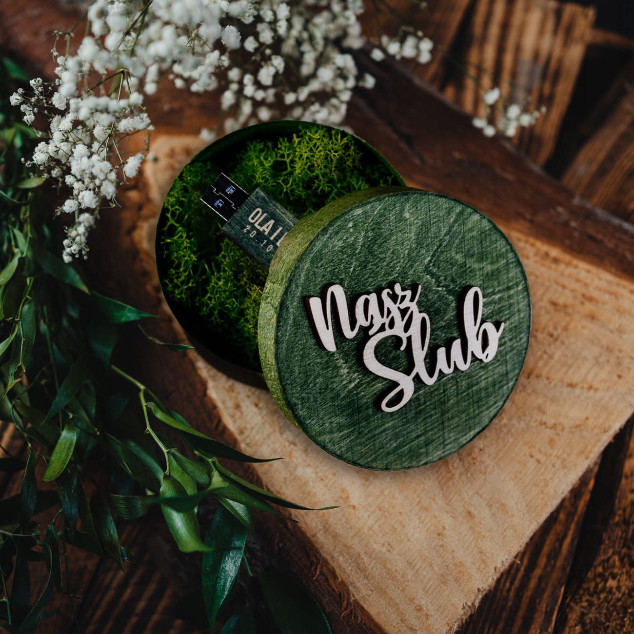 Круглый ящик на пендриве может стать беспрецедентным подарком или сувениром, который поможет хранить моменты, о которых мы не хотим забывать P> Цвет, деревянная текстура и оттенок мха могут немного отличаться от того, что мы видим в картинках. Box