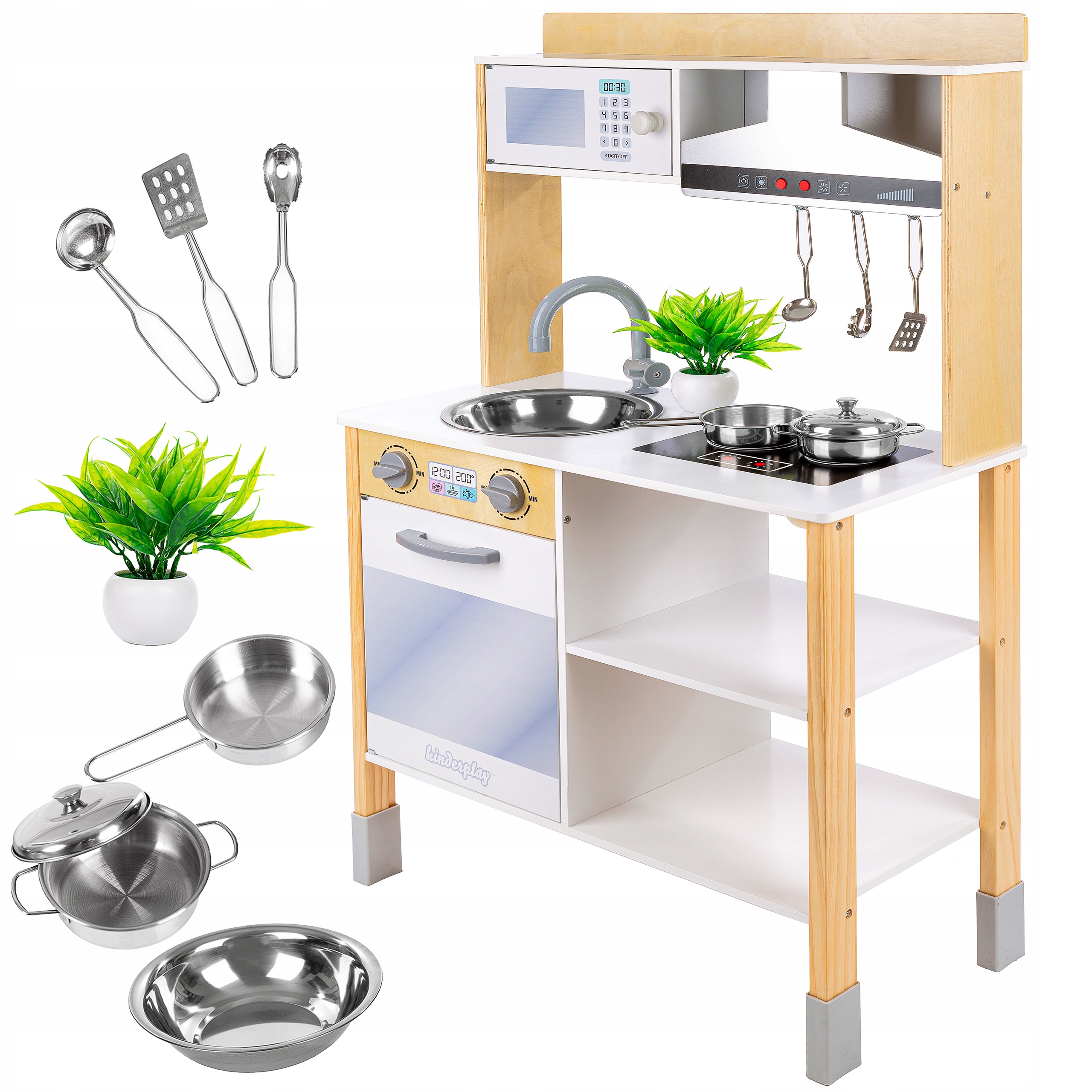ДЕРЕВЯННАЯ КУХНЯ ДЛЯ ДЕТЕЙ KINDERPLAY ИНТЕРАКТИВНАЯ ВЫТЯЖКА АКСЕССУАРЫ