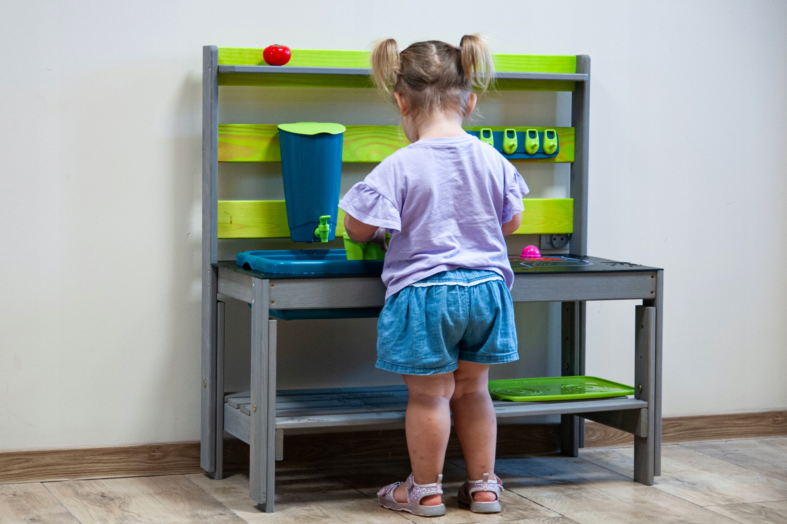 ✔ Регулируемые кухонные ножки позволяют легко отрегулировать высоту столешницы до высоты ребенка, что означает, что кухня растет с ребенком.
