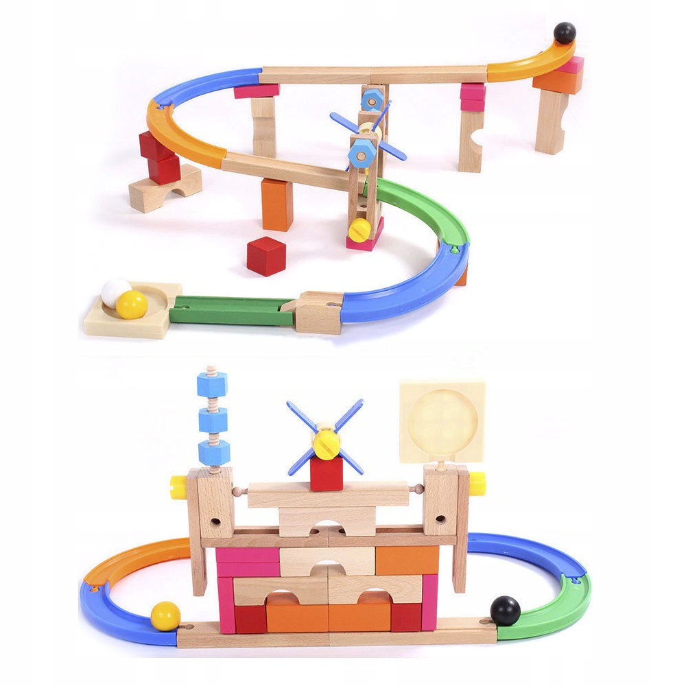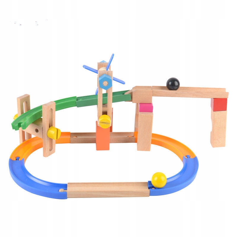 Деревянная дорожка для шариков с препятствиями и горкой