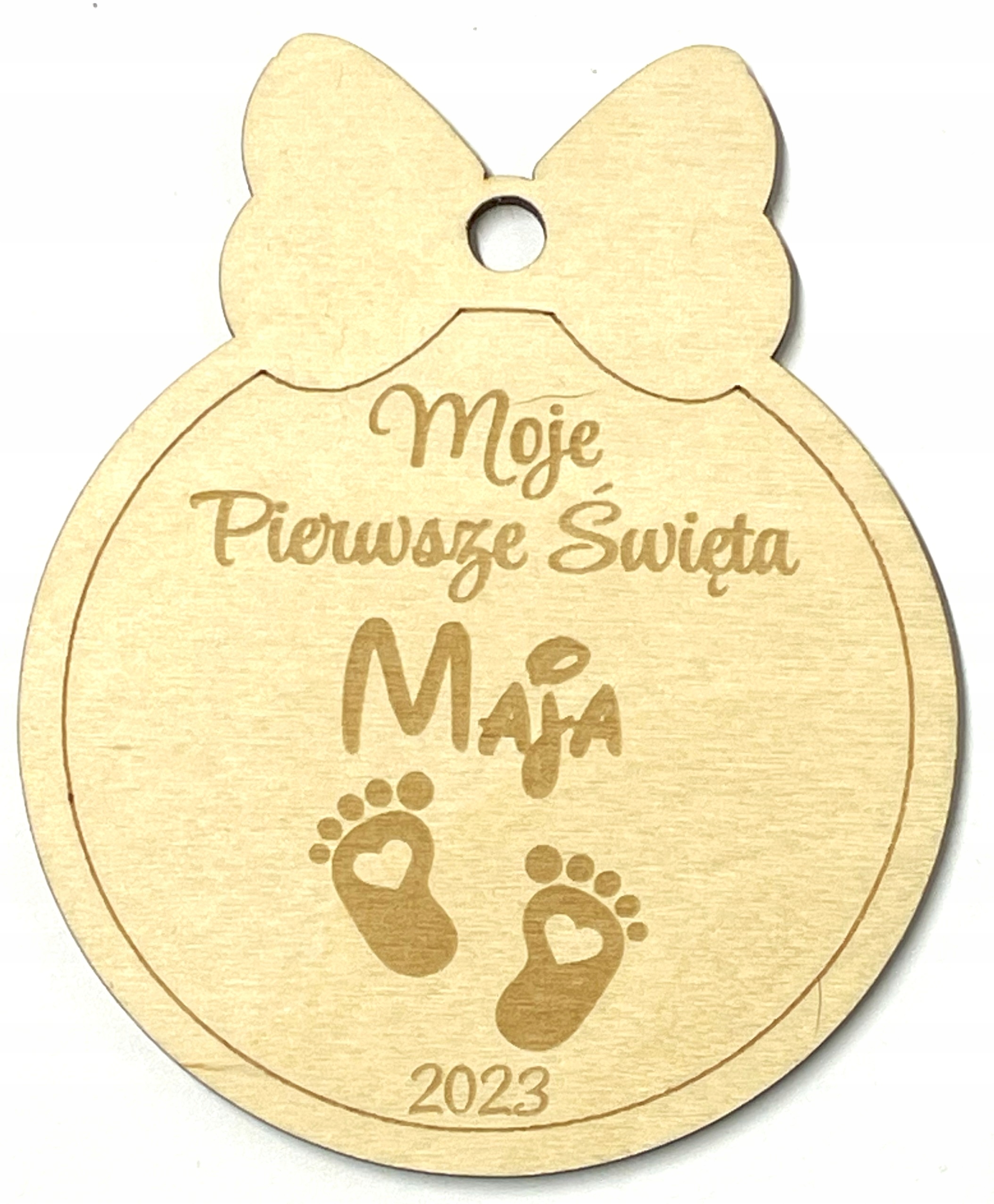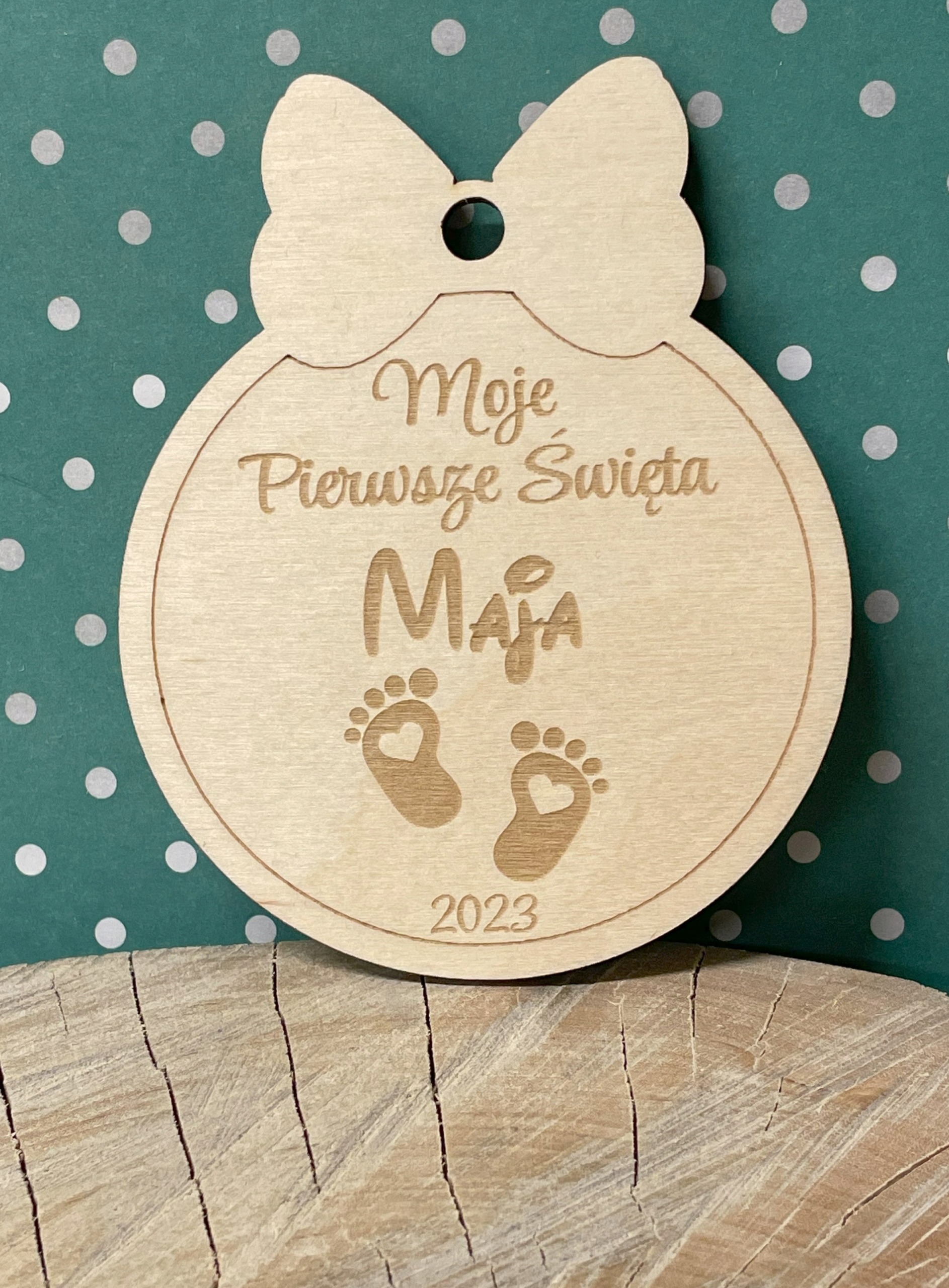 ДЕРЕВ'ЯНА КУЛЯ ЯЛИНКА ПІДВІСКА МОЄ ПЕРШЕ РІЗДВО ІМ'Я НОГИ