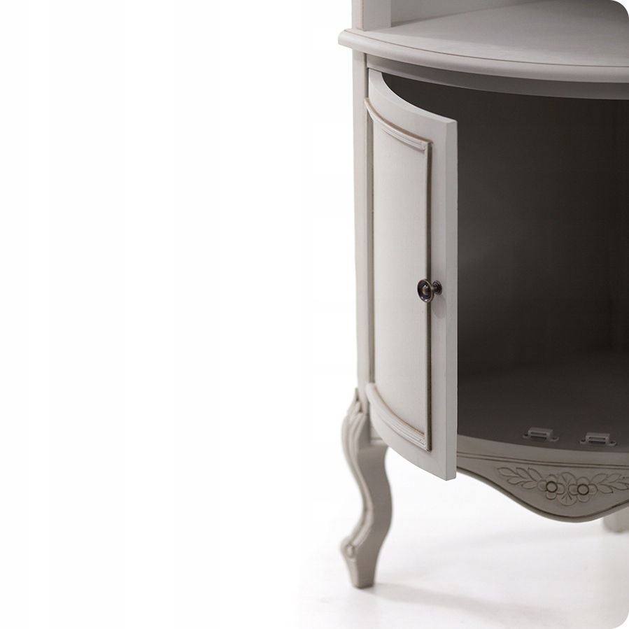 Провансальская мебель характеризуется прежде всего пасторальным стилем. Он был взят из стилей, популярных во французском Провансе. Однако серия «Провансальский Марсель», в которую входит показанная на фотографиях деревянная угловая стойка, — это больше, чем просто домашний прием. Деревенские акценты и оттенки античного серого придают интерьеру абсолютно оригинальный характер. Вышеупомянутая полка изготовлена из массива тополя (МДФ использован только сзади). Состоит из трёх высоких полок и вместительного двухдверного шкафа. Все это установлено на прочных гнутых ножках, которые, как и нижняя планка, покрыты резным декором ручной работы. Благодаря своему стилю этот провансальский столб прекрасно впишется в интерьер любой уникальной комнаты! Однако отзывы наших клиентов свидетельствуют о том, что оптимальное использование его функционала обеспечивается при размещении его в углу гостиной или кабинета.