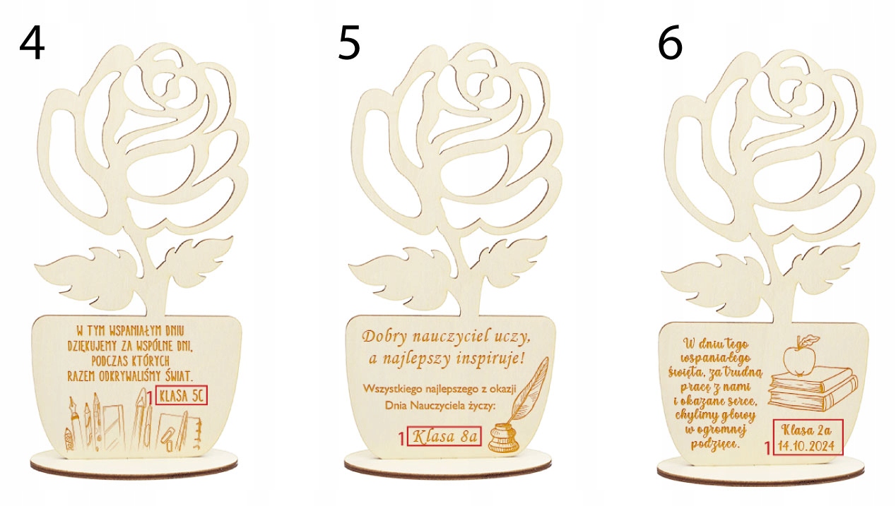 ДЕРЕВЯННЫЙ ЦВЕТОК РОЗЫ - ГРАВИРОВКА НА ДЕНЬ УЧИТЕЛЯ