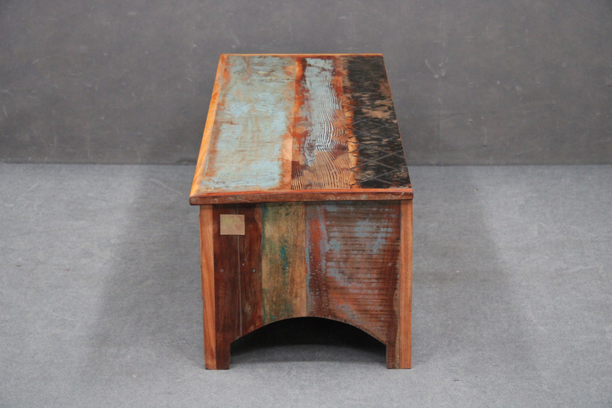 Скамейка новая. Серия изготовлена вручную полностью из индийской переработанной древесины. В основном используется древесина акации и манго. Благодаря уникальной фактуре дерева и разнообразной цветовой гамме он впишется в любой интерьер и идеально подойдет для прихожей. Цвета, металлическая отделка и структура древесины (мелкие трещины, дырочки, неровности, которые специально сделаны) подчеркивают индивидуальность мебели.