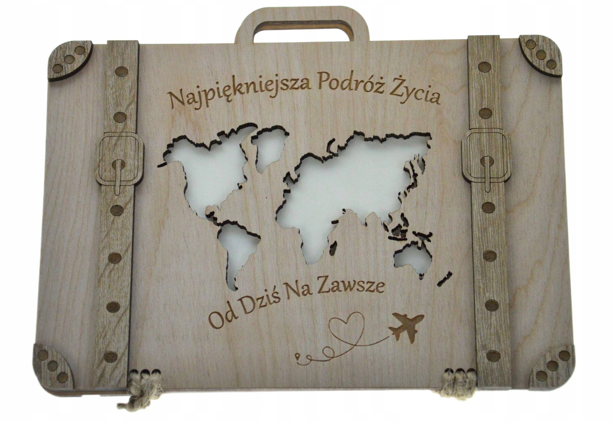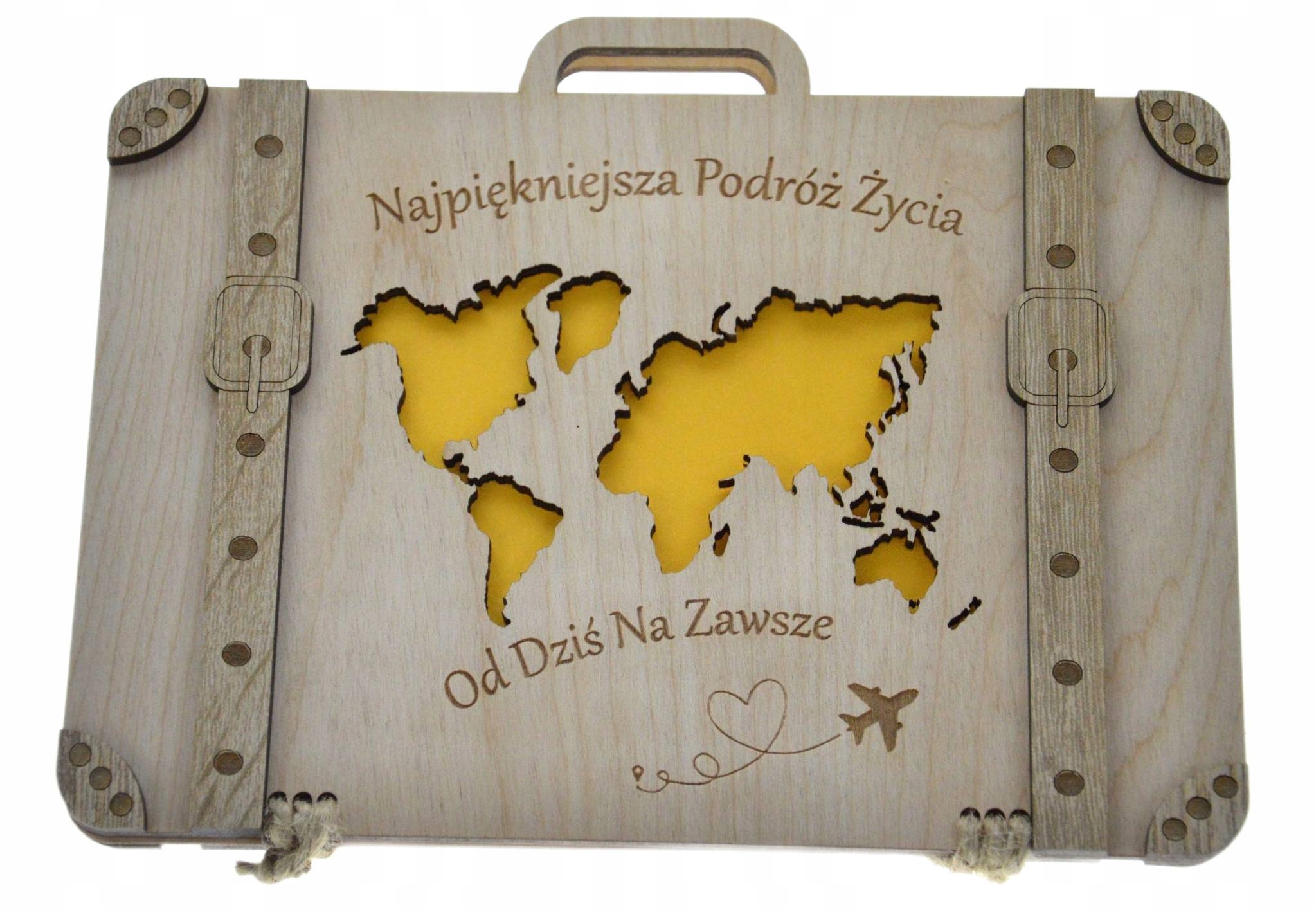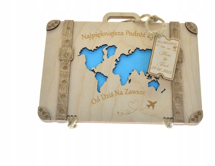 Ищете оригинальный свадебный подарок для своих близких, знакомых или друзей? Оригинальная идея для подарка наличными, ваучером, скретч-картой или купоном. Этот деревянный чемодан специально для ВАС! Изготовленный из высококачественной березы, он обеспечивает долговечность и престижный внешний вид, а также украшен декором из дуба Сонома с обеих сторон. В комплект входит красивая бирка для завязывания чемодана и выгравированные пожелания внутри, которые сделают ваш жест еще более личным.