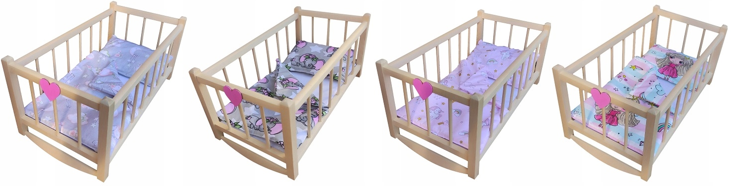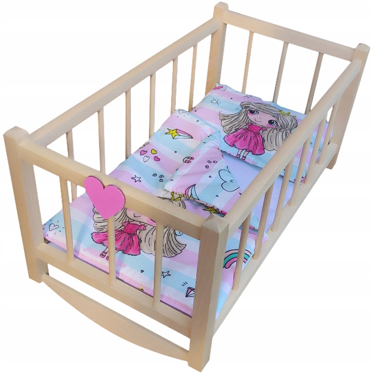ДЕРЕВЯННАЯ ЛЮЛЬКА ДЛЯ КУКОЛ - КРОВАТЬ + ПОСТЕЛЬНОЕ ПРИДЕРЖАНИЕ