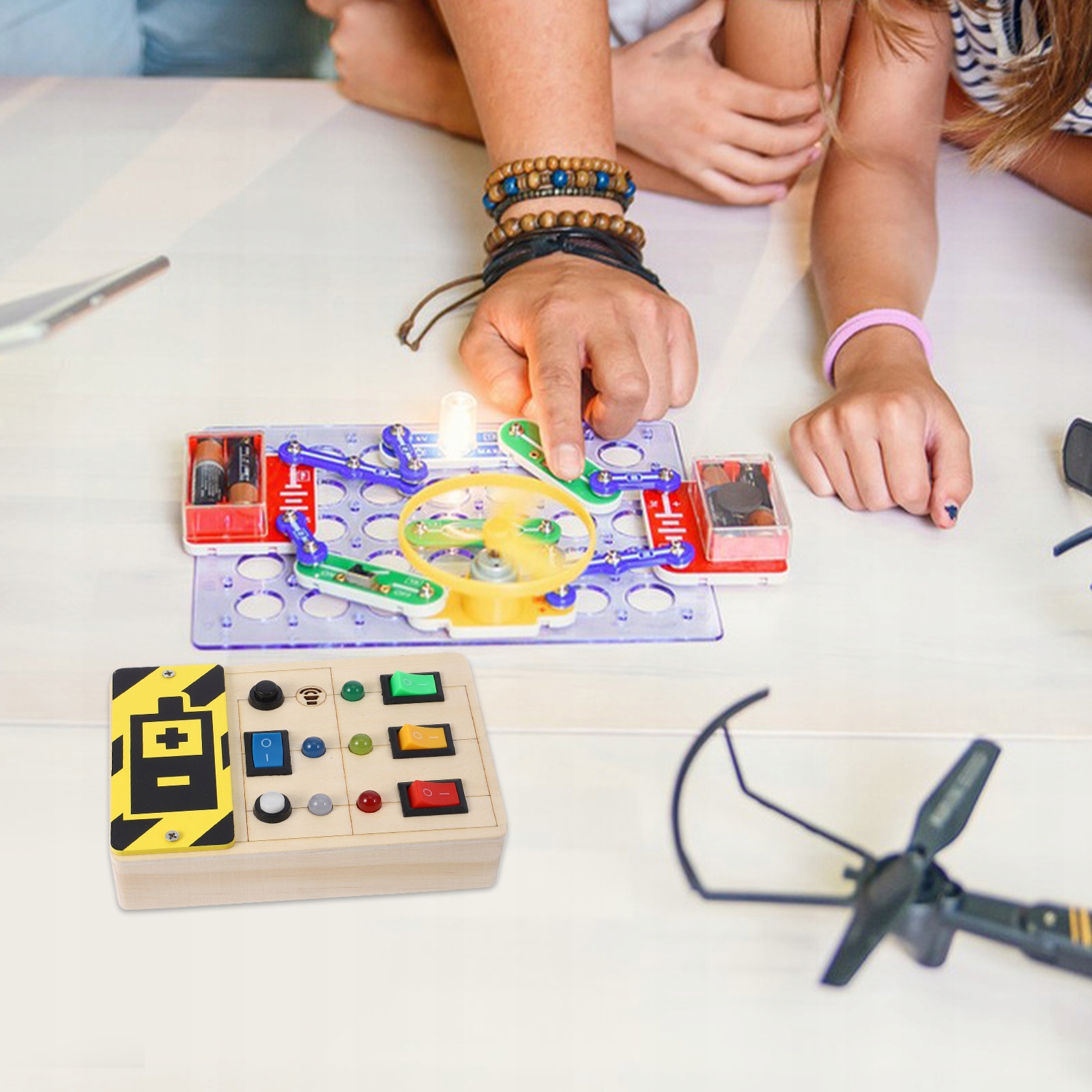 - 8 светодиодных переключателей - все работают по -другому, развивая ручное и моторические навыки. Ощущение благодаря ярким и разнообразным цветам. Дом, а также в путешествиях