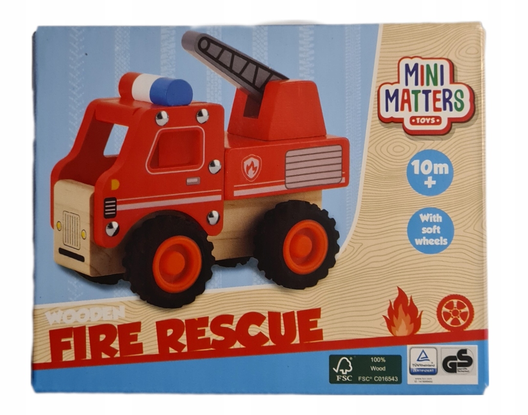 Деревянный автомобиль с резиновыми шинами большие мини -матча FSC Fire Brigade